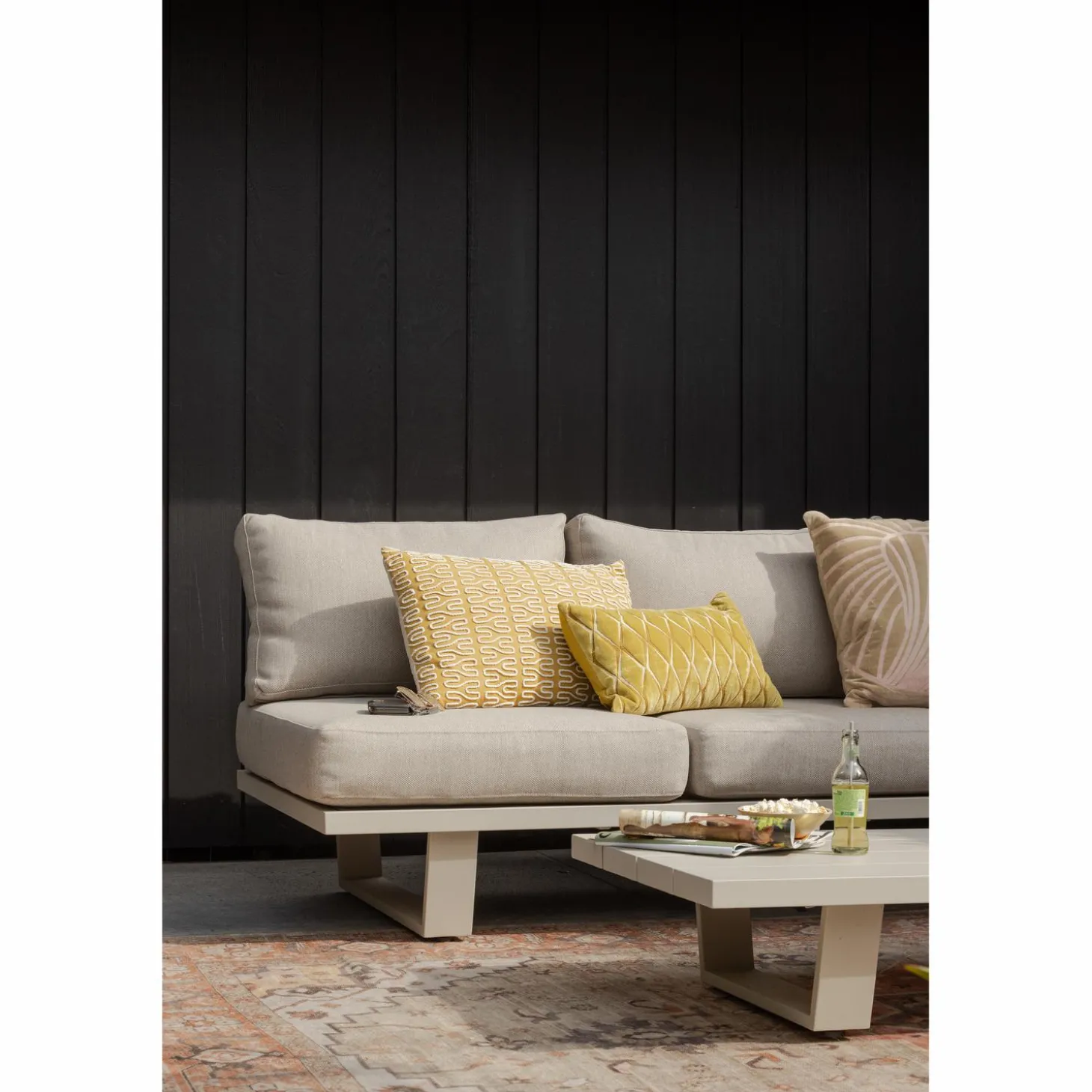 Het strakke aluminium frame geeft de tuinbank een tijdloze look die goed past in verschillende tuinstijlen. De royale zitting zorgt voor een uitnodigende uitstraling, terwijl de zachte kussens met olefin all weather stof comfort toevoegen. De zandkleur creëert een rustige basis in jouw tuin of op het terras. Door het clean design past deze tuinbank zowel in moderne als klassieke buitenruimtes. Met de Bear ben jij klaar om te relaxen tijdens zonnige dagen.