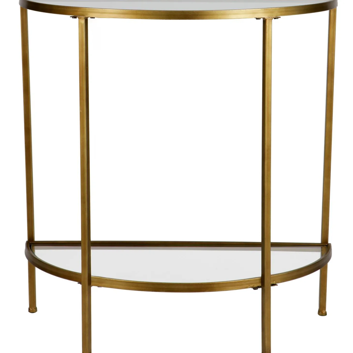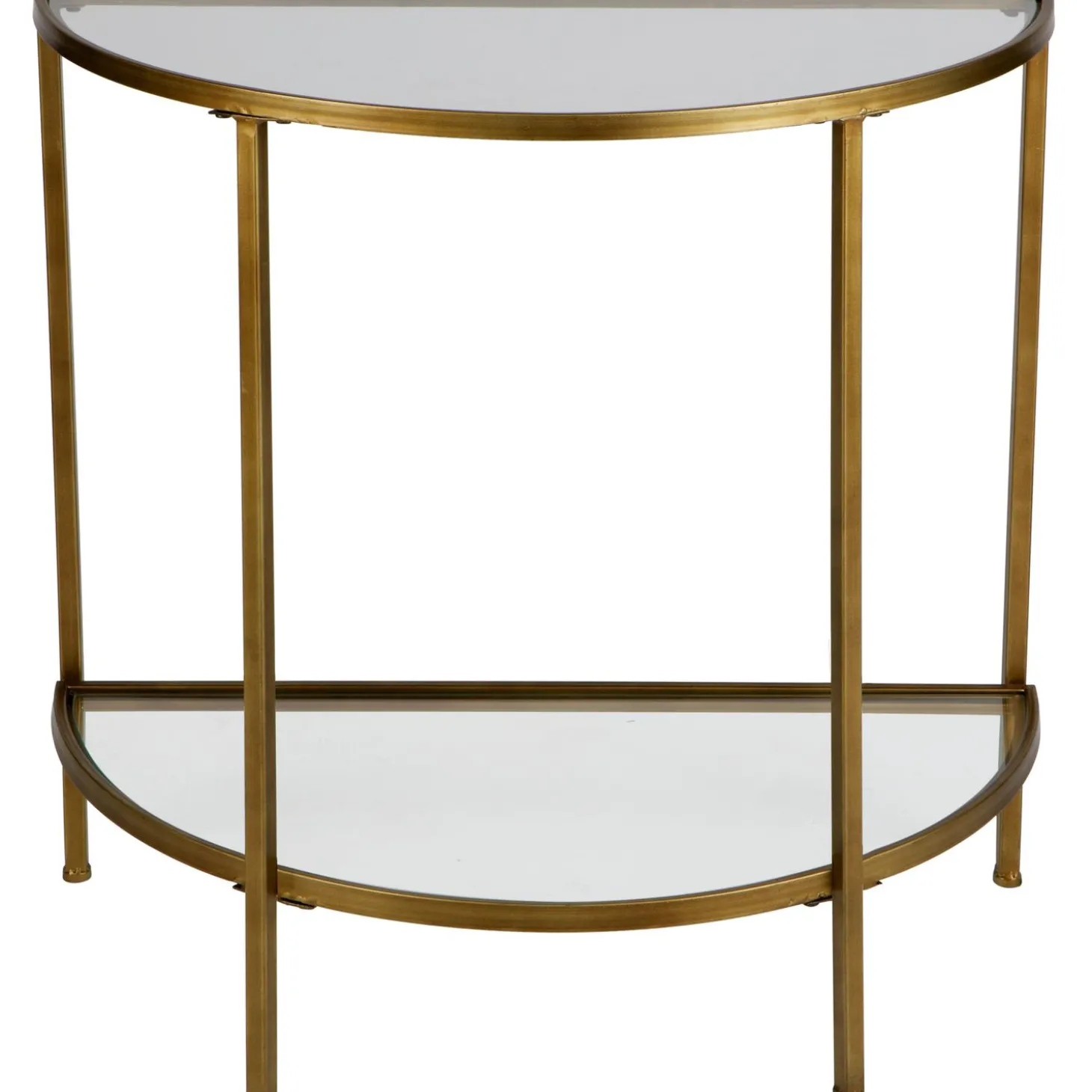 Steel de show met deze elegante Goddess sidetable uit de nieuwe collectie van WOOOD! Deze sidetable staat prachtig tegen een mooie opvallende muur door de afgevlakte achterzijde, de mooie ronding aan de voorzijde van de tafel zorgt voor een zacht uiterlijk. Door het slanke ijzeren frame in de kleur antique brass en de glazen platen past de sidetable thuis in verschillende woonstijlen. Geef je hal een mooie upgrade, of geef die kale muur in de huiskamer net dat beetje extra uitstraling met deze sidetable.