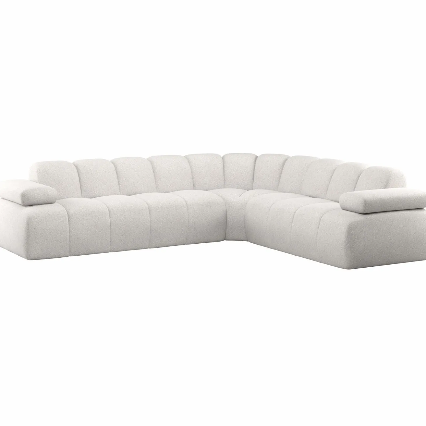 De Mojo hoekbank rechts in wollig ecru is meer dan een zitplek, het is dé plek waar je wegzakt na een lange werkdag en eindeloos bijkletst met vrienden.
