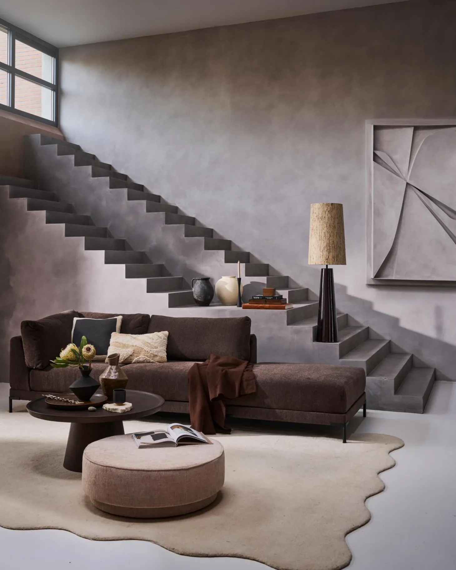 Degrof geweven stof voelt extra zacht aan door het mee geweven chenill en de stofheeft een opvallende en grove structuur, wat deze stof echt uniek maakt. De zachte stof is gemaakt van een bijzondere samenstelling. Zo bestaat de chenille onder andere uit polyester, katoen en viscose. De stof met onregelmatig weefpatroon heeft een Martindale van 30.000 en is geschikt voor redelijk intensief gebruik. Bovendien heeft de stof een luxueuze lichtweerkaatsing.