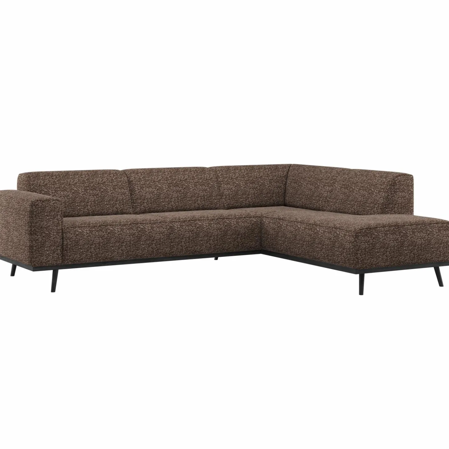Deze Statement hoekbank rechts in bruine melange maakt zijn naam meer dan waar: een echte blikvanger in je interieur.