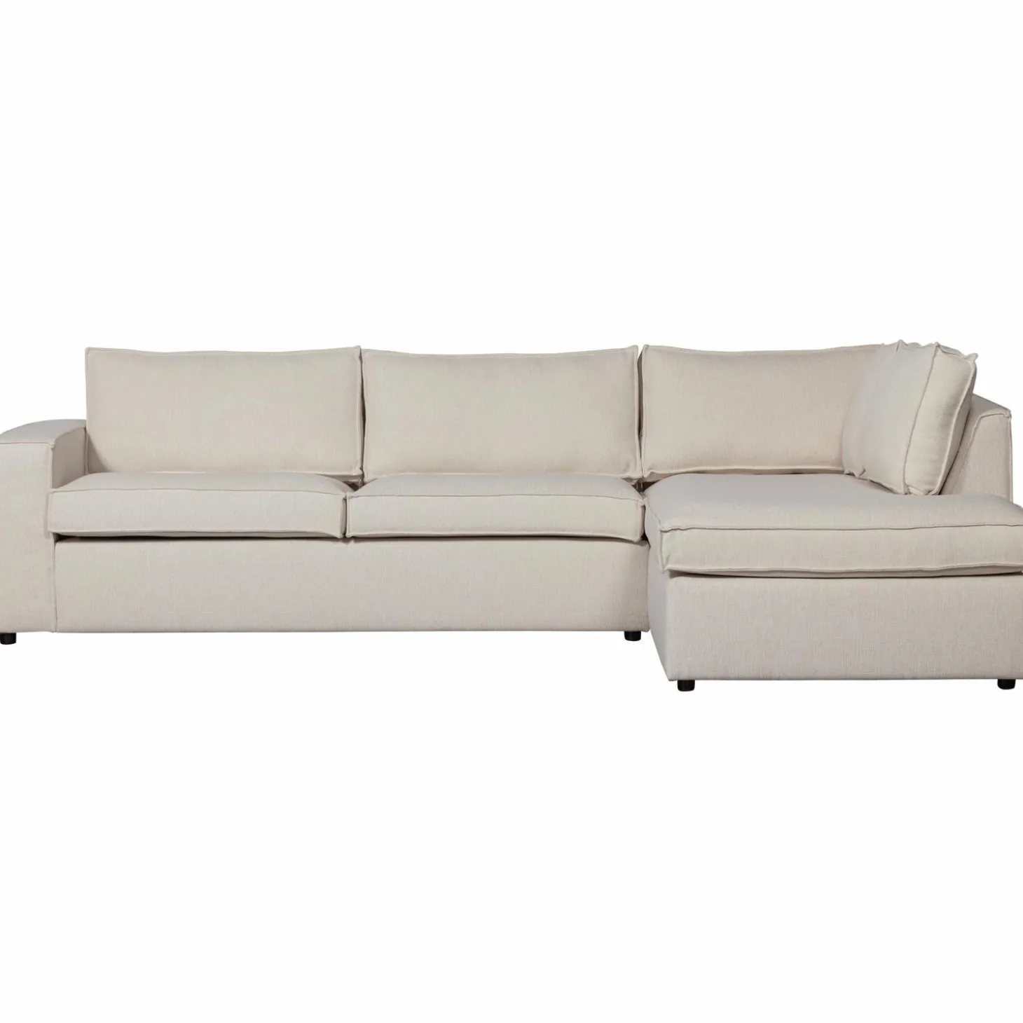 De Thomas hoekbank is een royale comfortabele hoekbank met een basic en warme uitstraling. Deze bank is voorzien van een zacht geweven stof (100% polyester) in de kleur zand en past goed in het interieur van nu. De bank heeft losse rugkussens en een stevig en uitstekend zitcomfort. De Thomas bank is te bestellen met de hoek aan de linker- en rechterkant. Dat maakt dat de bank geschikt is voor meerdere interieuropstellingen.