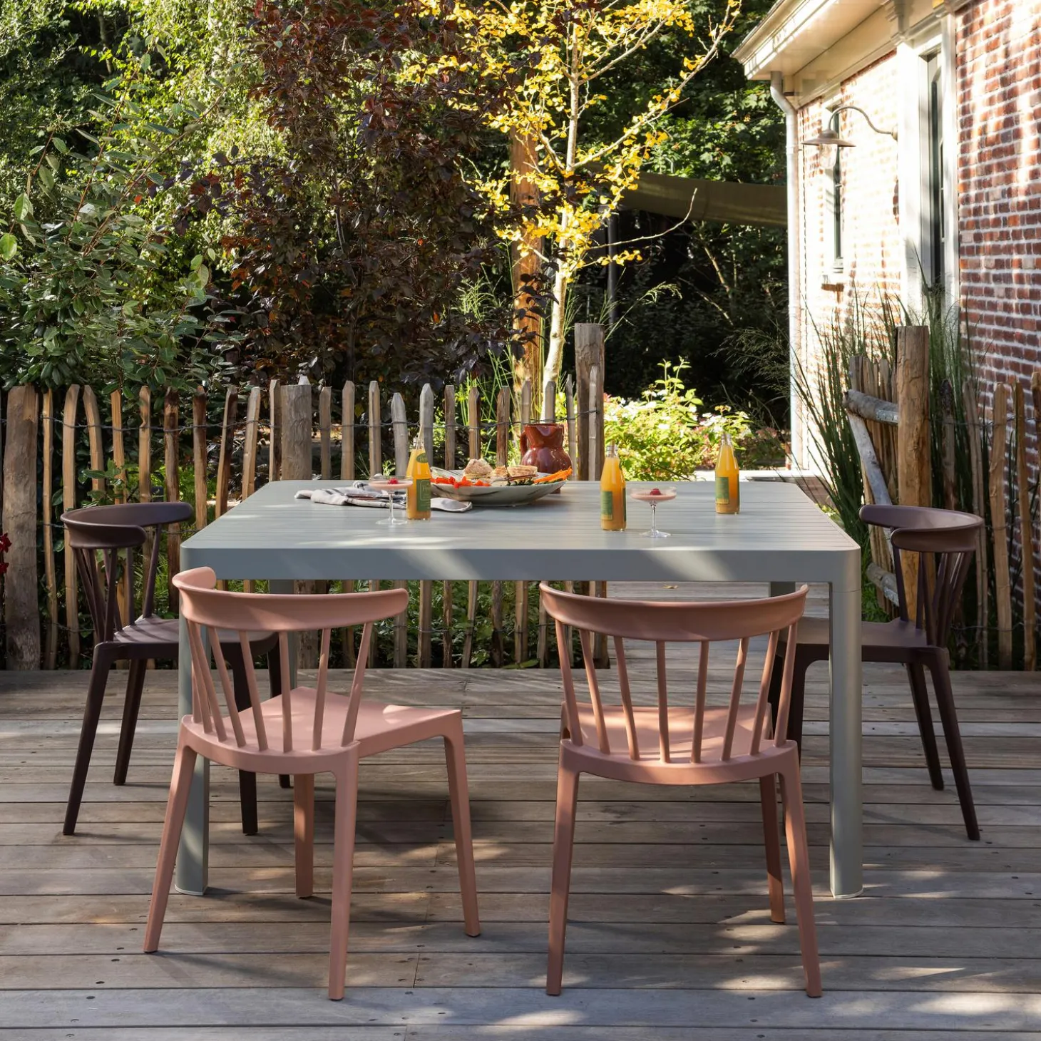 Het minimalistisch spijlendesign geeft deze tuinstoel een tijdloze uitstraling die in veel buitenruimtes past. De verticale spijlen in de rugleuning zorgen voor een speels detail, terwijl de eenvoudige vorm de stoel rustig houdt. De zalmroze kleur voegt een zachte touch toe aan je buitenruimte. Je kunt deze stoel goed combineren met andere buitenmeubels. Het ontwerp past bij verschillende stijlen, van modern tot klassiek.