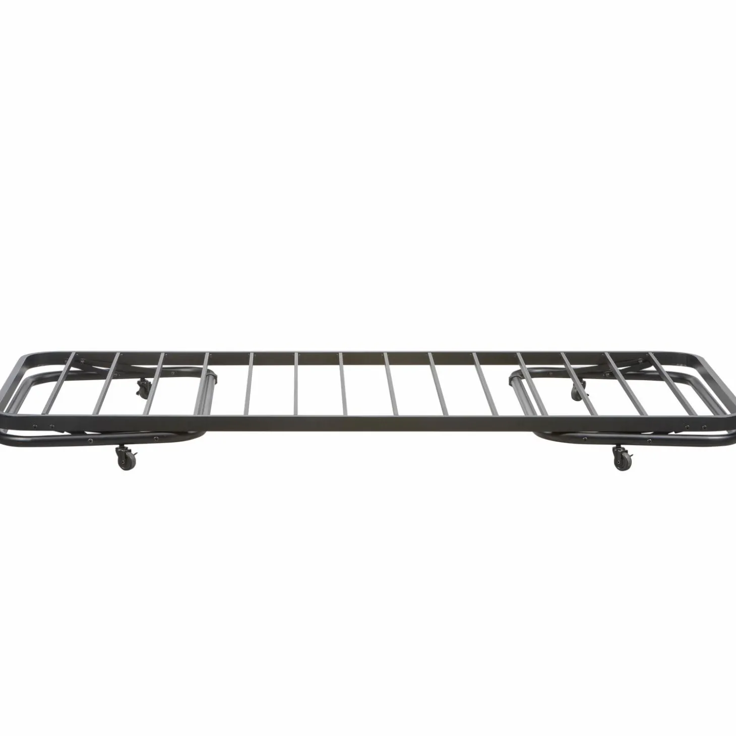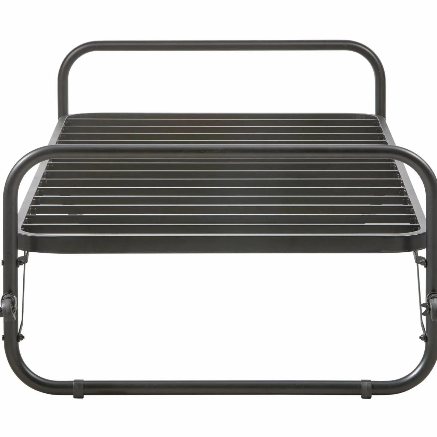 Super handig als logeerbed dat je gemakkelijk kunt opbergen onder een eenpersoonsbed! Het Lucy onderschuifbed, uit de WOOOD-collectie, wordt gekenmerkt door het luchtige spijlenframe en de matzwarte afwerking. Het bed is gemaakt van gepoedercoat metaal en heeft een zeer sterke constructie. Het metalen bed biedt ruimte voor een matrasmaat van 90×200 cm.