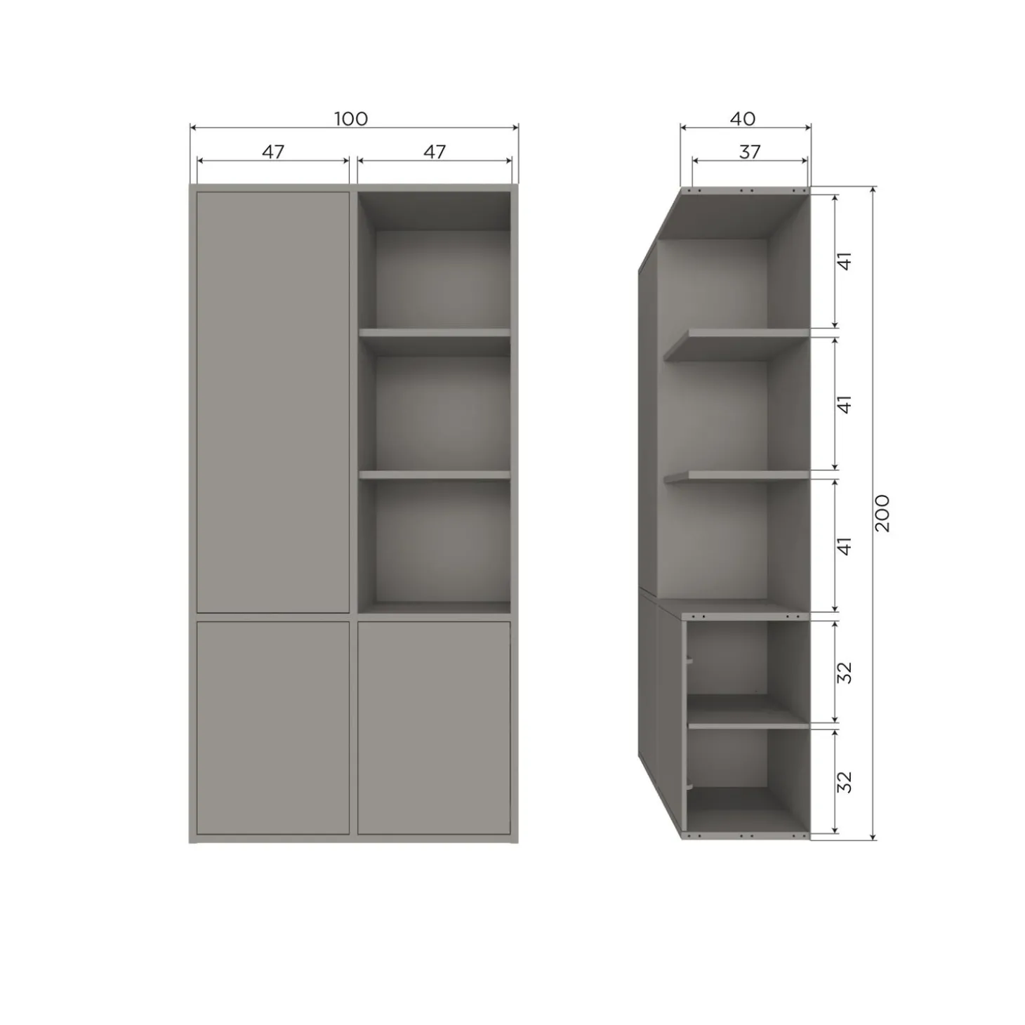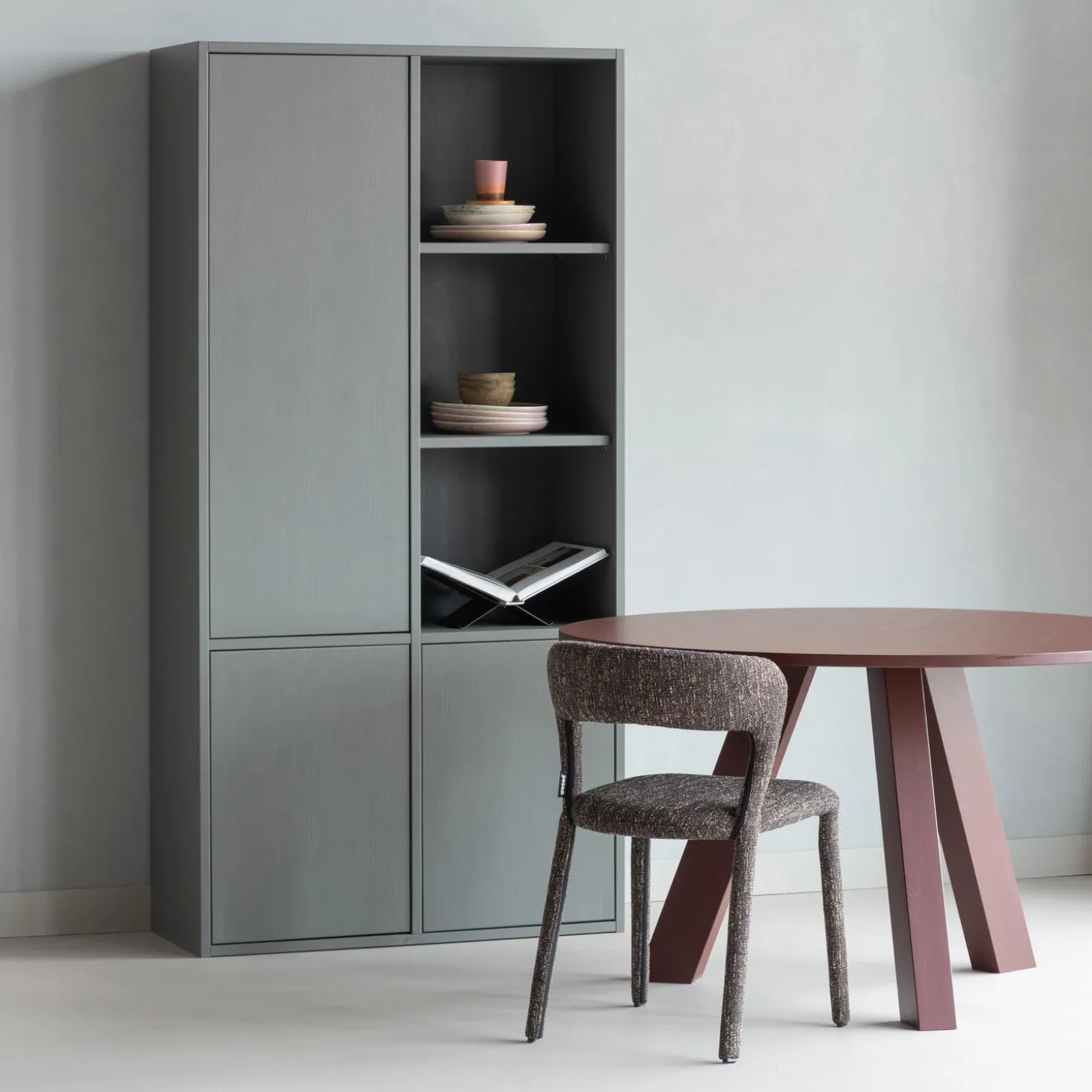 De Merel opbergkast in warmgrijs combineert tijdloze elegantie met moderne functionaliteit.