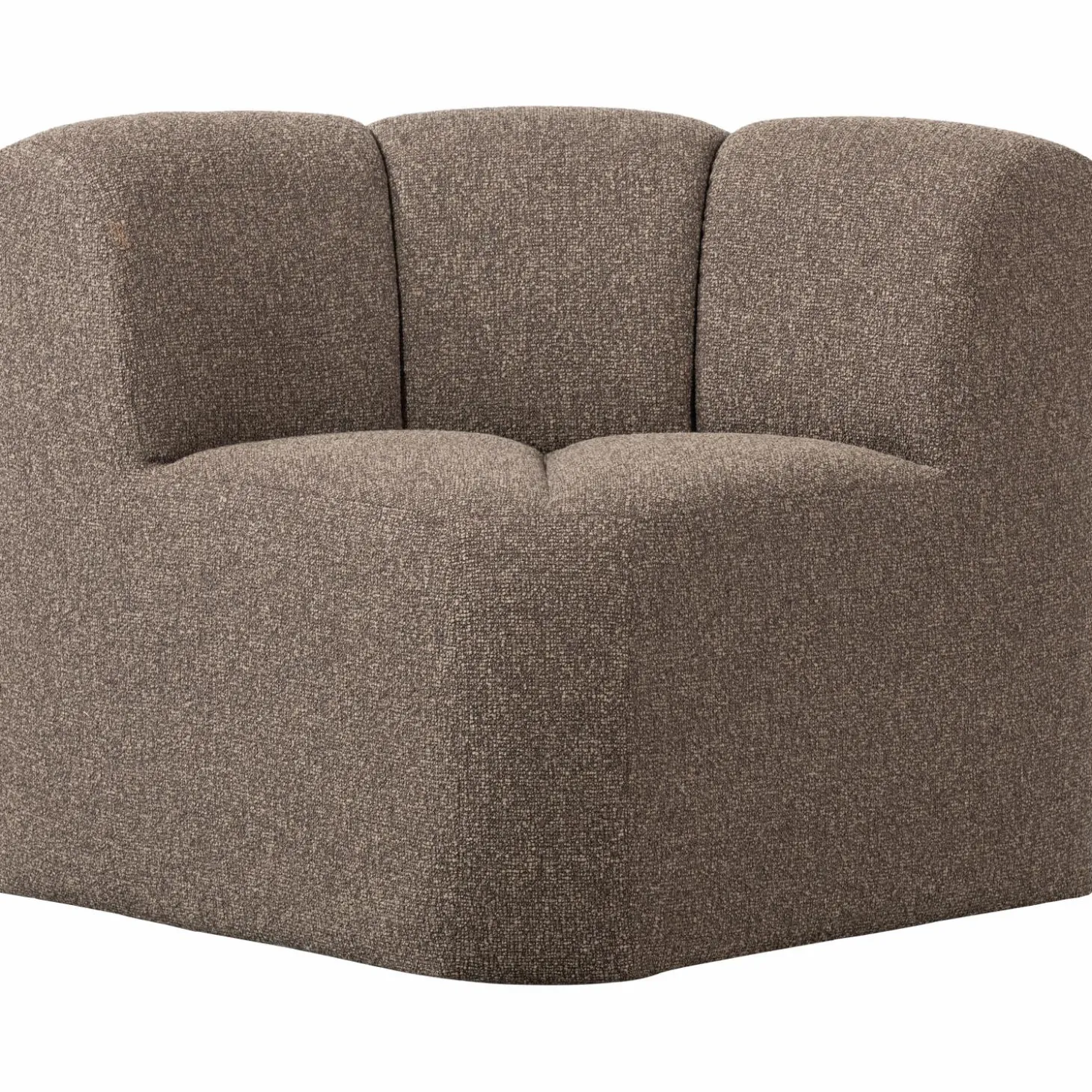 MOJO EETBANK HOEK MET RUGLEUNING BOUCLÉ BRUIN MELANGE