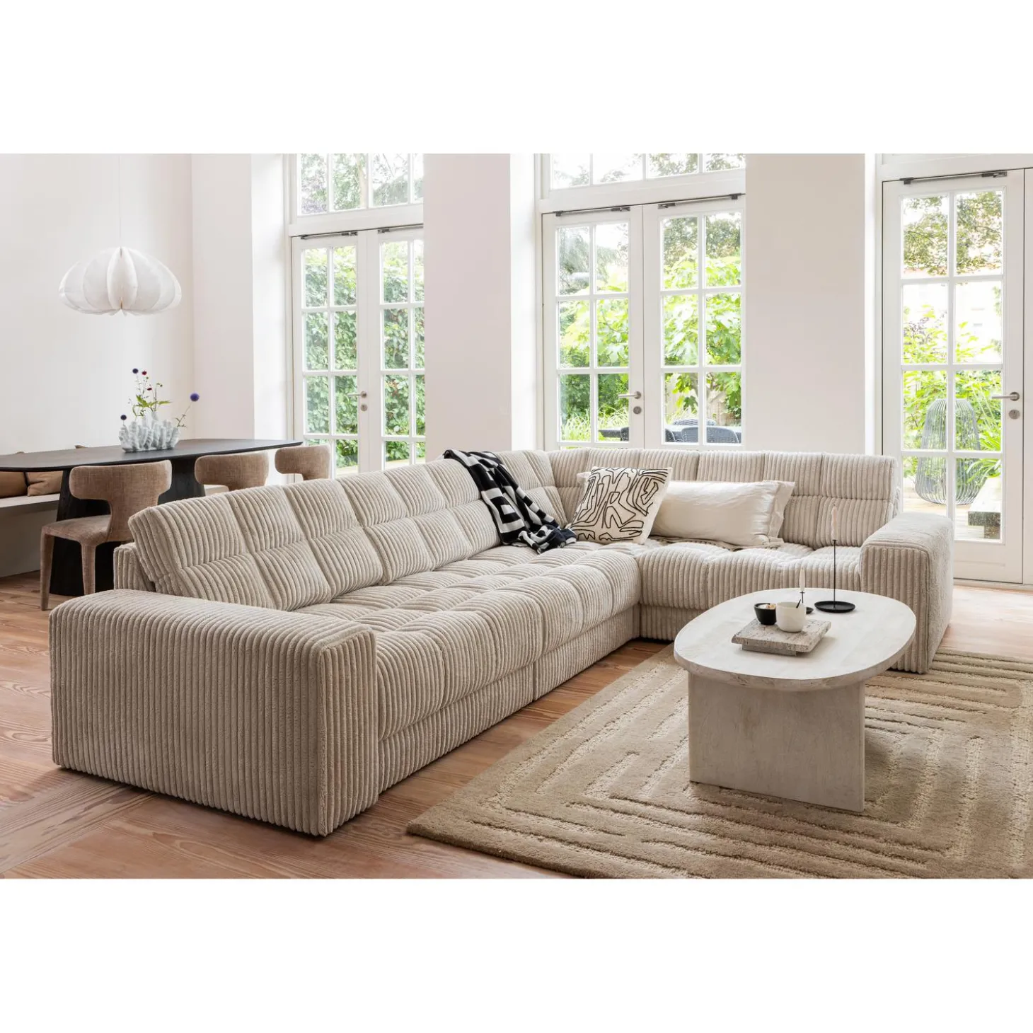 Clearance WOOOD Second Date Hoekbank Rechts Ribstof Naturel