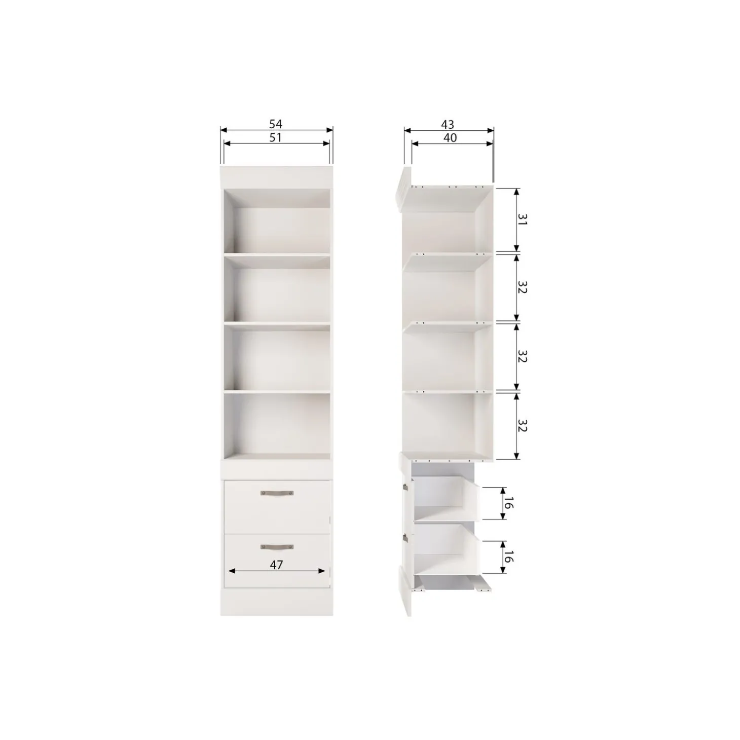 Deze Bold boekenkast is eigentijds, basic en een tikkeltje stoer. Bold is een eigen ontwerp en komt uit de collectie van het merk WOOOD. De garderobekast is gemaakt van grenen dat is afgewerkt in een sneeuwwitte kleur. De kast is voorzien van twee lades en vier open vakken. Dit zorgt voor genoeg opbergruimte. Door de moderne, stoere uitstraling past deze kast in vele interieurs thuis!