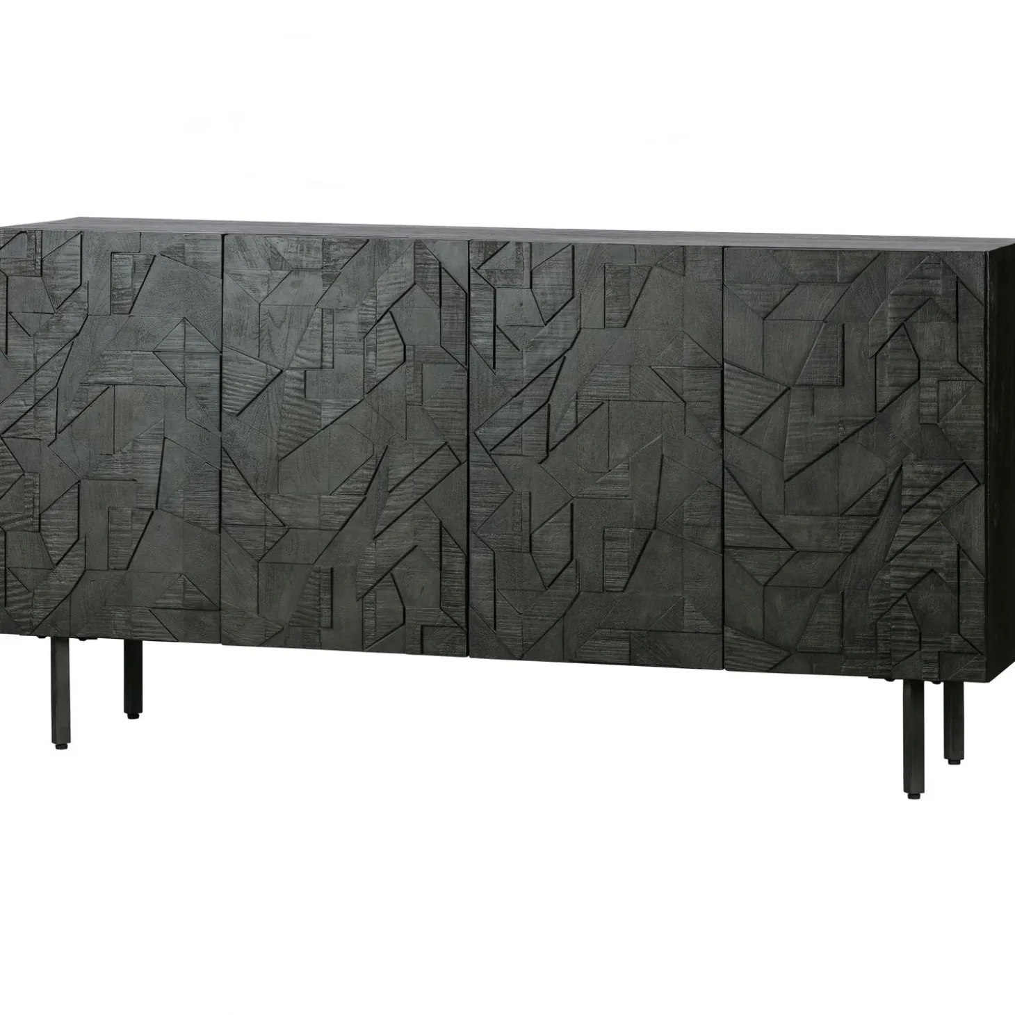 Het dressoir heeft een totale hoogte van 83 cm, is 160 cm breed en 40 cm diep. De metalen poten hebben een hoogte van 18 cm. De vier deuren met houtsnijwerk zijn 65 cm hoog, 39,5 cm breed en 2 cm dik. De deurtjes beschikken over een softclose systeem. De inhoud van de kast is in twee grote vakken verdeeld met elk een 78 cm brede legplank. Deze legplank heeft een diepte van 33,5 cm. De open vakken hebben in een inhoud van (hxbxd) 30x78x35 cm.