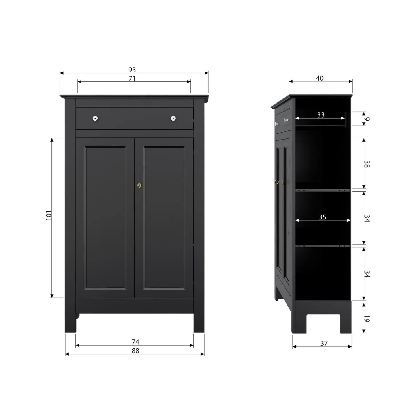 Wat een plaatje! Deze stoere meidenkast Eva uit de WOOOD collectie. Deze kast brengt direct sfeer in je interieur. Hij past prima in meerdere woonstijlen en leent zich perfect voor in een woonkamer of slaapkamer. De kast is gemaakt van zwart gelakt grenenhout dat afkomstig is van een FSC gecertificeerde leverancier. Het interieur van deze kast is gemaakt van gemelamineerd spaanplaat en de handige lade bovenin, met 2 zwart metalen knoppen en is voorzien van solide metalen ladegeleiders. De binnenkant van de kast is ingericht met 3 brede legplanken. De twee deuren in de kast zijn voorzien van een slot en sleutel. Deze wandkast bied je genoeg opbergruimte voor alle spullen die je niet graag laat zien.