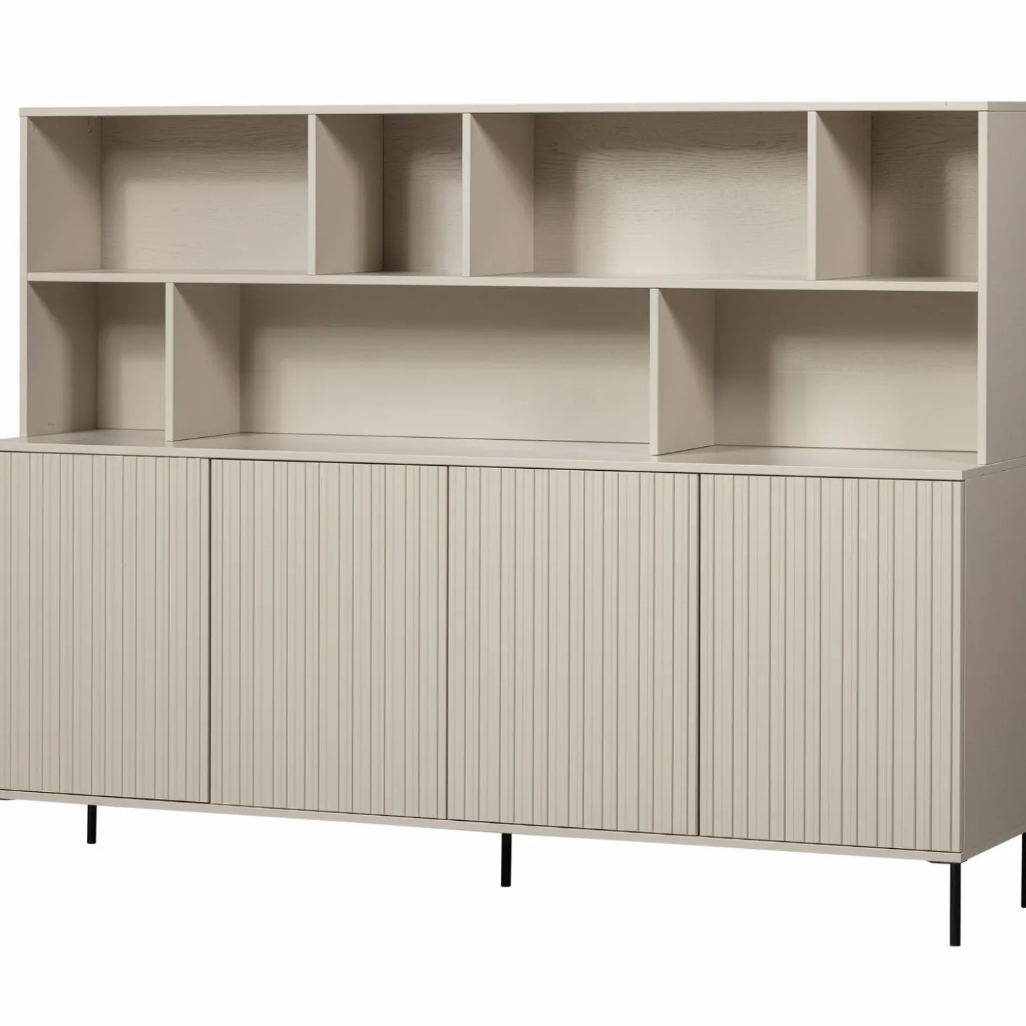 De poten zijn van metaal en voorzien van een zwarte coating. Dit geeft de kast een strakke moderne uitstraling. Door het specifieke lijnenspel op de deuren heeft deze kast echt een eigen karakter. Deze New Gravure wandkast combineert stijl en praktische opbergruimte op een meesterlijke manier.