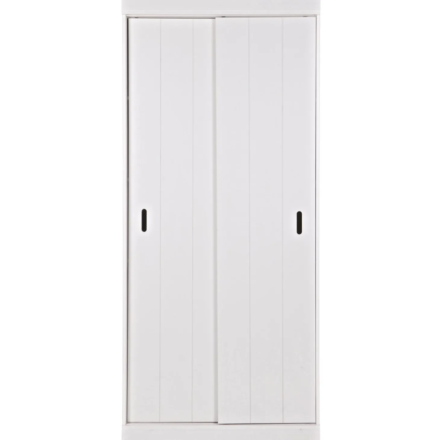 De Row is een trendy basic opbergkast vol met legplanken (zonder tussenschot). De kast Row heeft twee strokendeuren met sleuven gecombineerd met een strakke sokkel en koof. Het voordeel van deze kast is dat de kast prima in een kleine ruimte geplaatst kan worden dankzij de schuifdeuren. Deze kast is uitgevoerd in massief grenenhout, afkomstig van een FSC-gecertificeerde leverancier, en afgewerkt in de frisse kleur wit. Met deze kast is ook goed een mooie kastenwand te creëren want de kast is goed naast elkaar te plaatsen. De kast wordt geleverd als bouwpakket met een duidelijke montage-instructie.