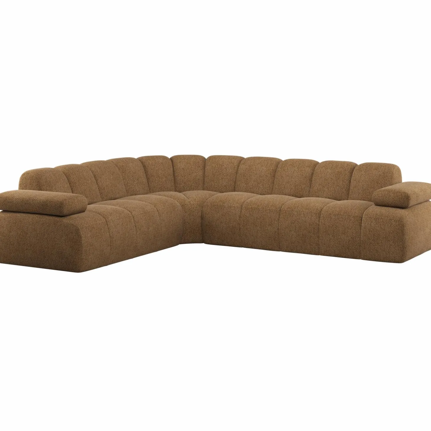 De Mojo hoekbank links in wollig honinggeel is meer dan een zitplek, het is dé plek waar je wegzakt na een lange werkdag en eindeloos bijkletst met vrienden.