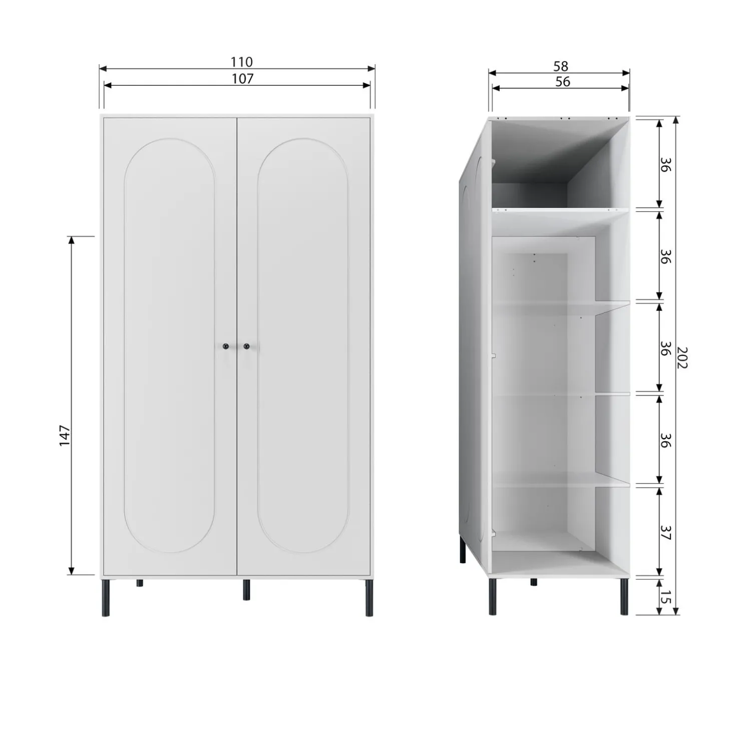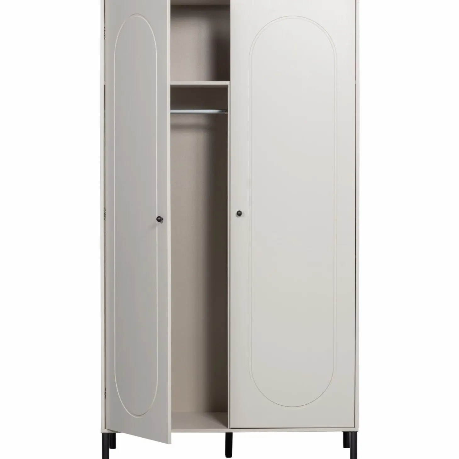 Standaard krijg je één legplank en een royaal hanggedeelte. Perfect voor je blazers, jurken en die ene jas waar je altijd naar grijpt. Wil je meer vlakke opbergruimte? Het optionele interieurpakket met drie extra legplanken geeft je alle flexibiliteit die je nodig hebt.