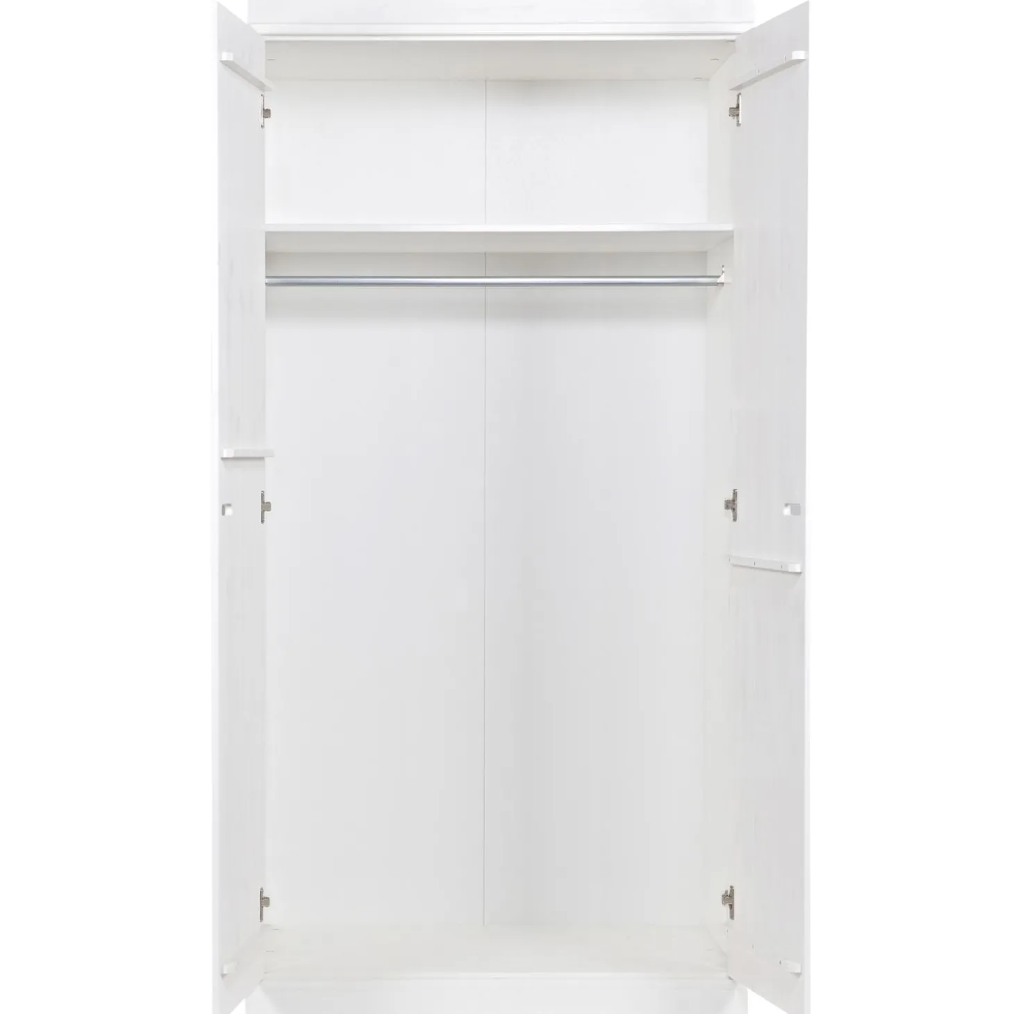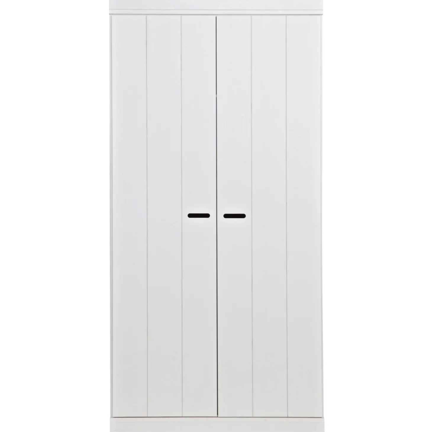 Uit de serie CONNECT; een stoere basic 2-deurs kledingkast met strakke sokkel en koof gecombineerd metstrokendeuren met sleufgrepen. Met de CONNECT kasten kun je je eigen kastenwand bouwen! De romp van de CONNECT kledingkast is gemaakt van massief grenenhout dat afkomstig is van een FSC gecertificeerde leverancier. De binnenzijde is voorzien van gemĆŖlamineerde legplanken, praktisch met schoonmaken! De kasten zijn in de kleur wit gespoten, maar je schildert ze zelf binnen een handomdraai ook in een andere kleur (gebruik in dat geval watergedragen lak).
