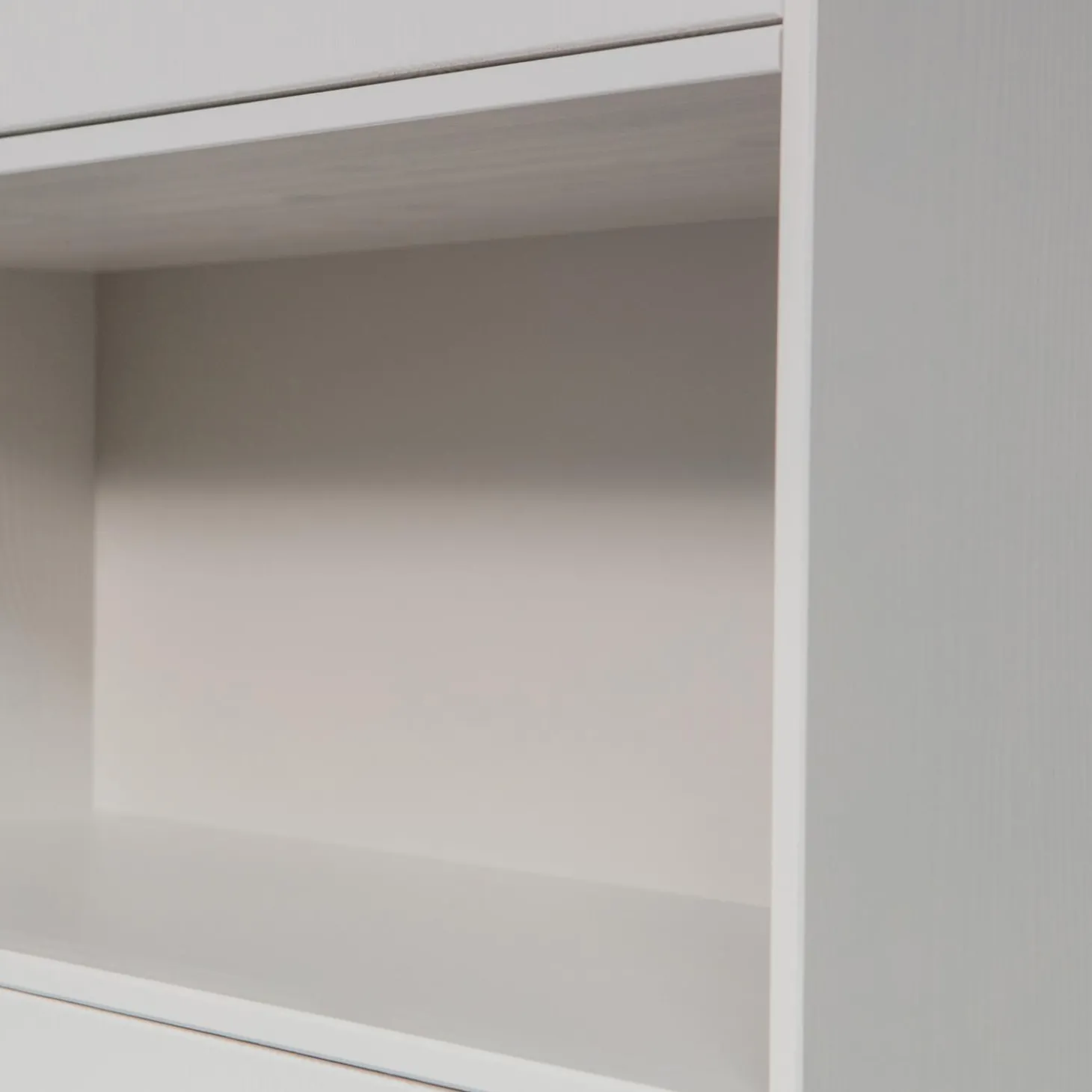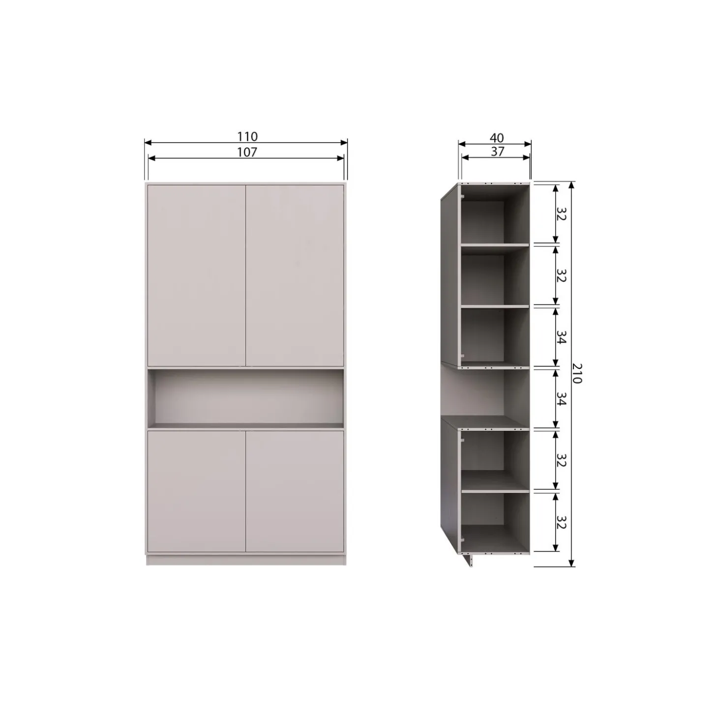 De bovenste twee deuren van de Finca buffetkast dekken drie handige opbergvakken af. Hieronder bevindt zich een open vak voor het presenteren van jouw mooiste woondecoratie. De twee onderste deuren houden nog eens twee ruime opbergruimten uit het zicht. Vier van de zes vakken hebben ieder een hoogte van 32 cm en twee vakken (in het midden) hebben een hoogte van 34 cm. Alle zes de vakken hebbeneen breedte van 108 cm en een diepte van 37 cm.Iedere plank heeft een draagkracht van maximaal 10 kg wanneer het gewicht gelijkwaardig verspreid is.