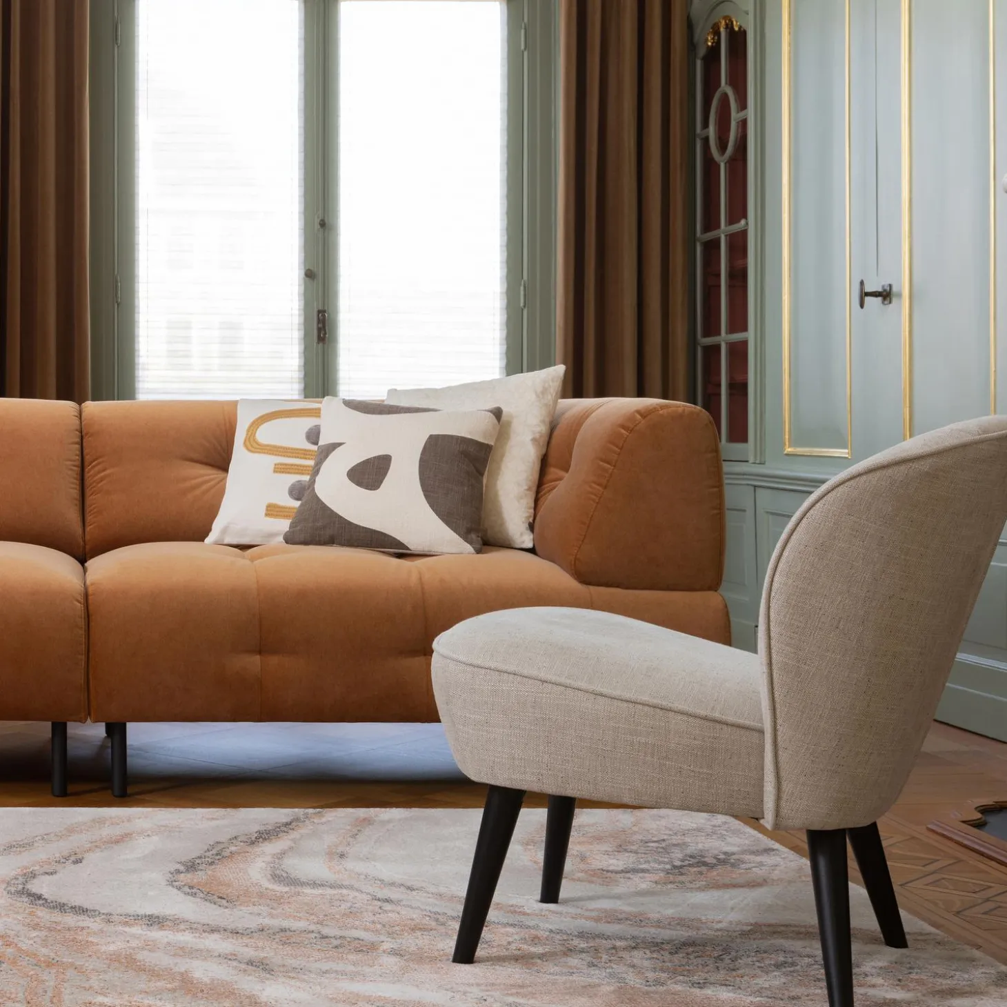 Hot WOOOD Lloyd 4-zits Bank Velvet Kaneel