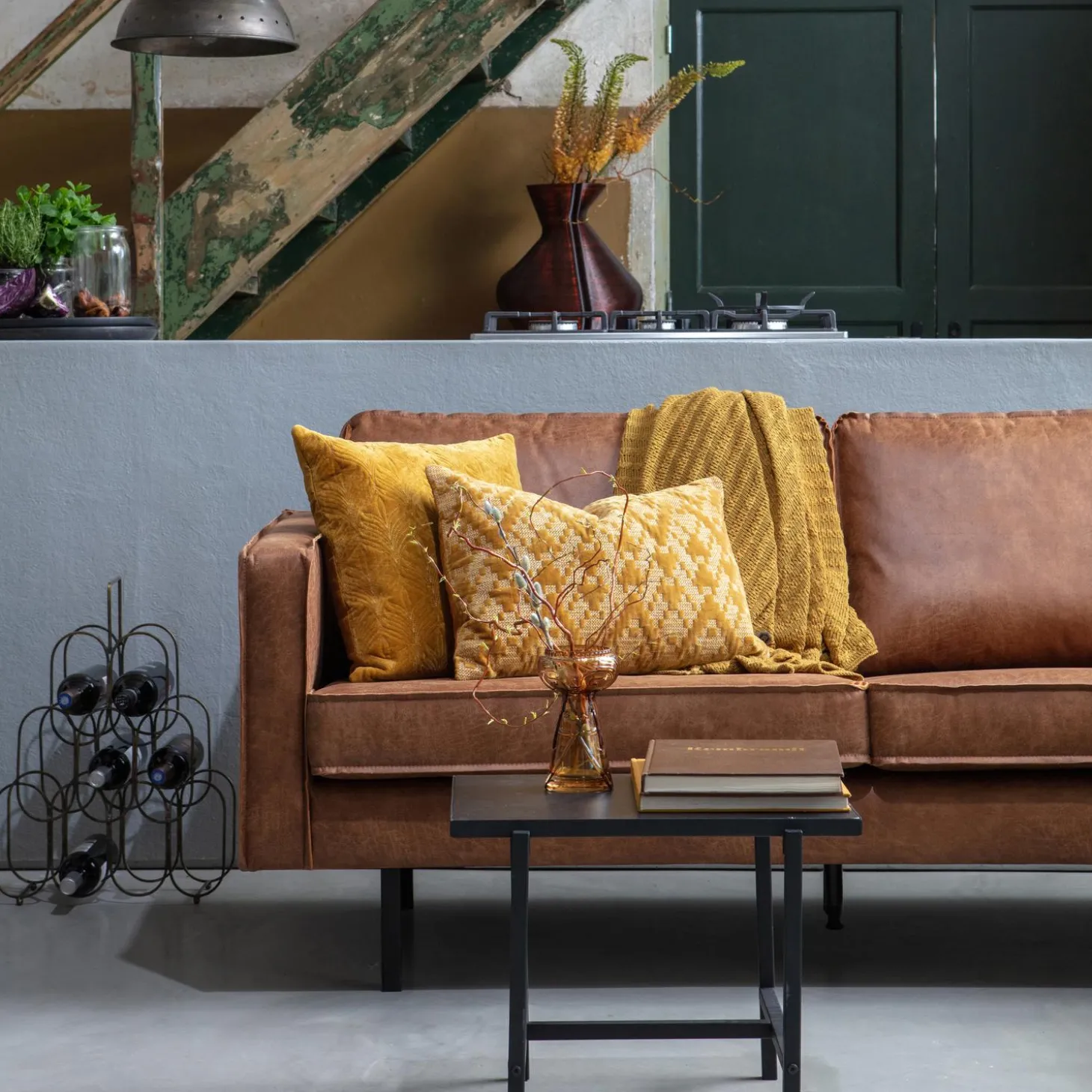 De serie Rodeo van WOOOD is modern, stoer en eigentijds. Deze hoekbank links is royaal, biedt volop zitruimte en beschikt over een stoere stof, Recycle leer. Dankzij haar slanke frame en losse kussens toont de bank subtiel in de living. De poten zijn van zwart metaal.De hoogte van de bank is 85 cm, de breedte van de bank is 266 cm , de diepte is 88 cm en de diepte van het hoekelement is 213 cm. De breedte van het 2-zitsgedeelte is 180 cm, de breedte van het hoekgedeelte is 86 cm. De zithoogte bedraagt 45 cm, de zitdiepte is 60 cm en de hoogte van de armleuningen is 68 cm.