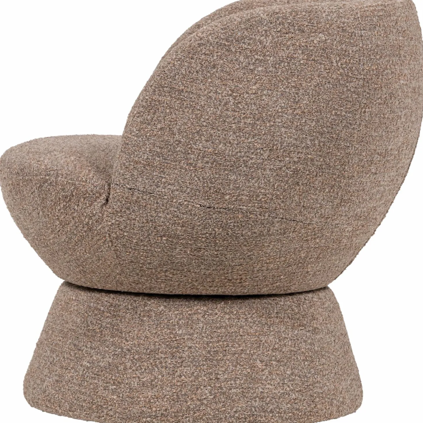 De zachte, ronde vormen nodigen uit om lekker onderuit te zakken met een goed boek, terwijl de draaibare voet zorgt voor flexibiliteit in gebruik. Of je nu een gesprek voert, naar buiten staart of gewoon het perfecte hoekje zoekt, deze fauteuil draait moeiteloos mee.