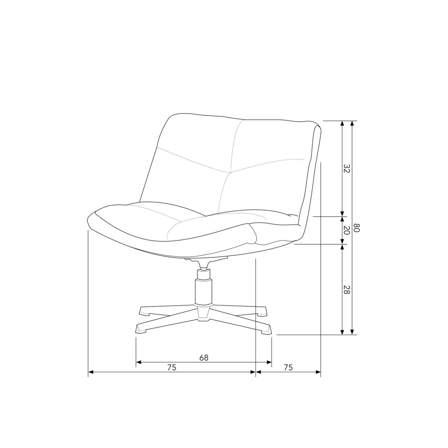 De Vinny draaifauteuil heeft een totaalhoogte van 80 cm, het breedste en diepste gedeelte meet 75 cm. De zithoogte is 48 cm en zitdiepte 52 cm, loungen maar! De zitbreedte is 75 cm, de rugleuning is 32 cm hoog en 12 cm dik. Het metalen onderstel is 28 cm hoog en 51 cm breed en diep, het draaisysteem heeft een diameter van 6 cm en elke poot heeft een lengte van 34 cm. De draaifauteuil heeft een maximale draagkracht van 120 kg.