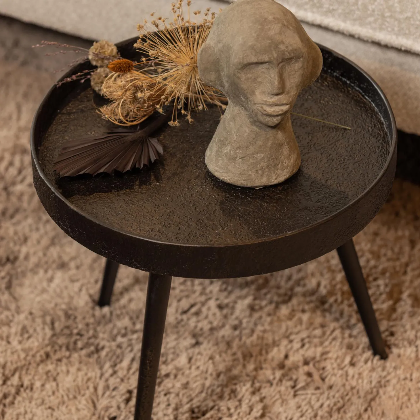Mis je wat sfeer in je interieur? Soms is dat met hele kleine aanpassingen gemakkelijk op te lossen. Neem nou deze Bounds bijzettafel uit de collectie van WOOOD, een prachtige toevoeging in iedere ruimte! Bounds is voorzienvan een handgemaakte houten blad met een zinkfosfaat coating en een metalen onderstel met een antique gouden finish. Door de vintage uitstraling en de prachtige warme goude kleur is Bounds een echte sfeermaker. Het is ook heel gaaf om de twee verschillende formaten bijzettafels met elkaar te combineren om ze zo als salontafel te gebruiken. Afmetingen van Bounds zijn: M: H 41 xø41cm. Het max. draagvermogen van de bijzettafel is 30 kg.