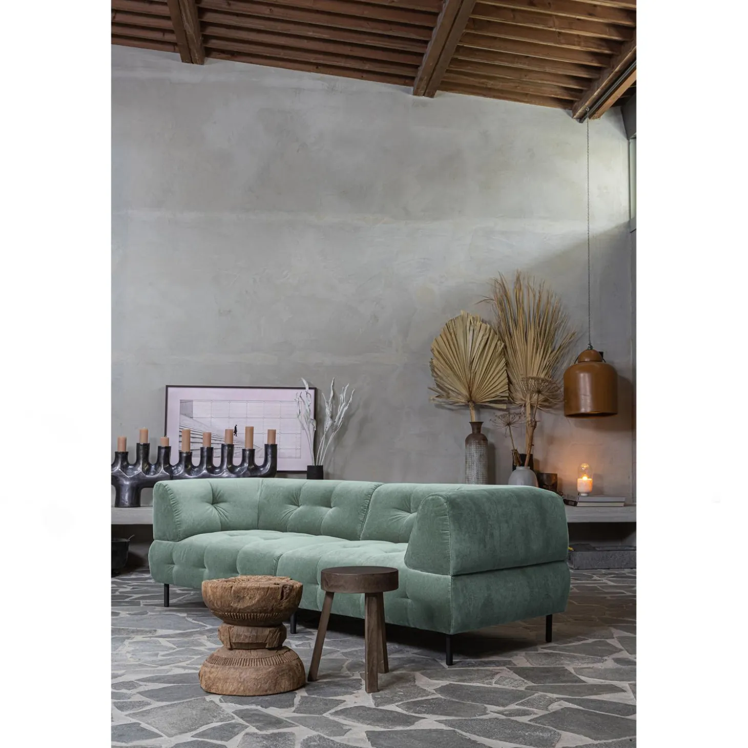 New WOOOD Lloyd 4-zits Bank Velvet Waterplant