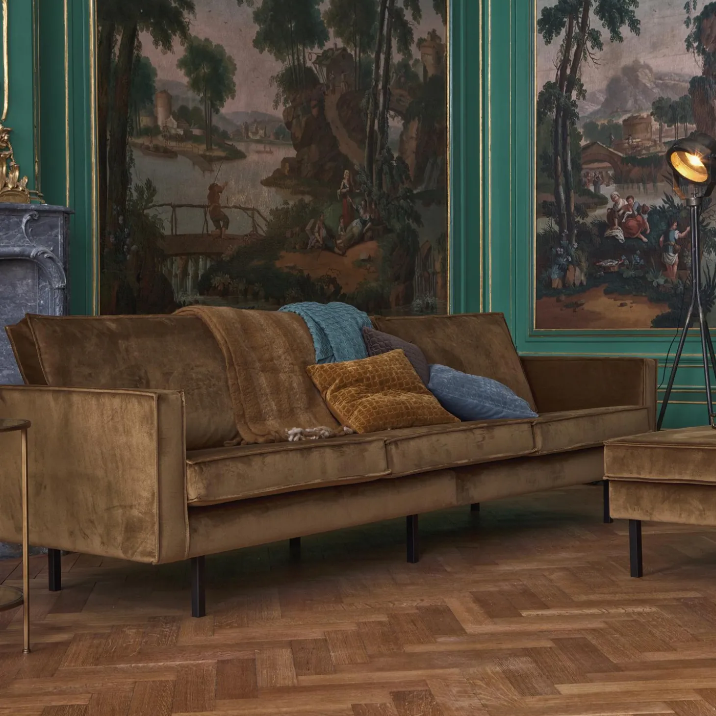 New WOOOD Rodeo Hocker Op Poten Velvet Honinggeel