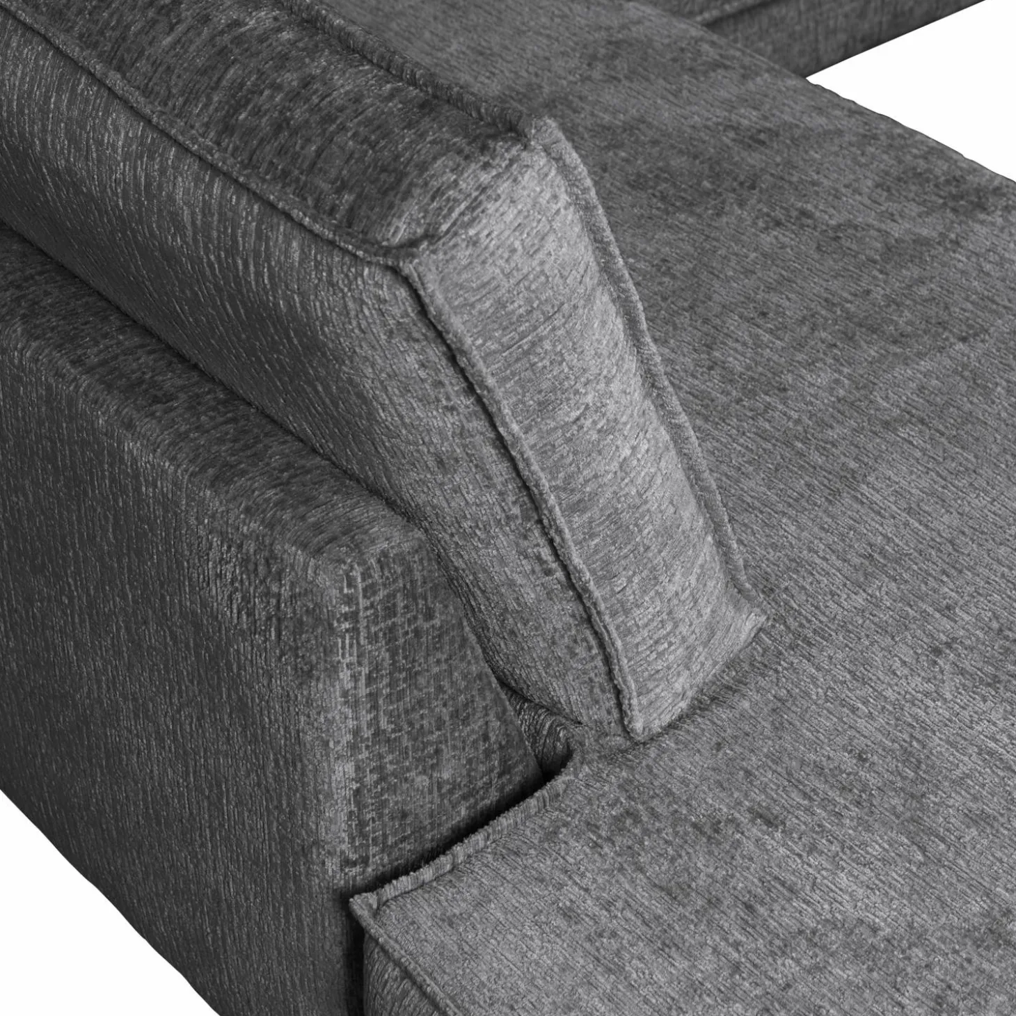 De poten zijn van zwart metaal. De hoogte van de bank is 85cm. De totale breedte van de bank is 266cm, de breedte van het hoekgedeelte is 86cm en de breedte van het 2-zitsgedeelte is 180cm. De diepte van het hoekgedeelte is 213 cm en van het 2-zitsgedeelte is de diepte 88cm. De zithoogte bedraagt 45 cm, de zitdiepte is 60 cm en de hoogte van de armleuningen is 68 cm.