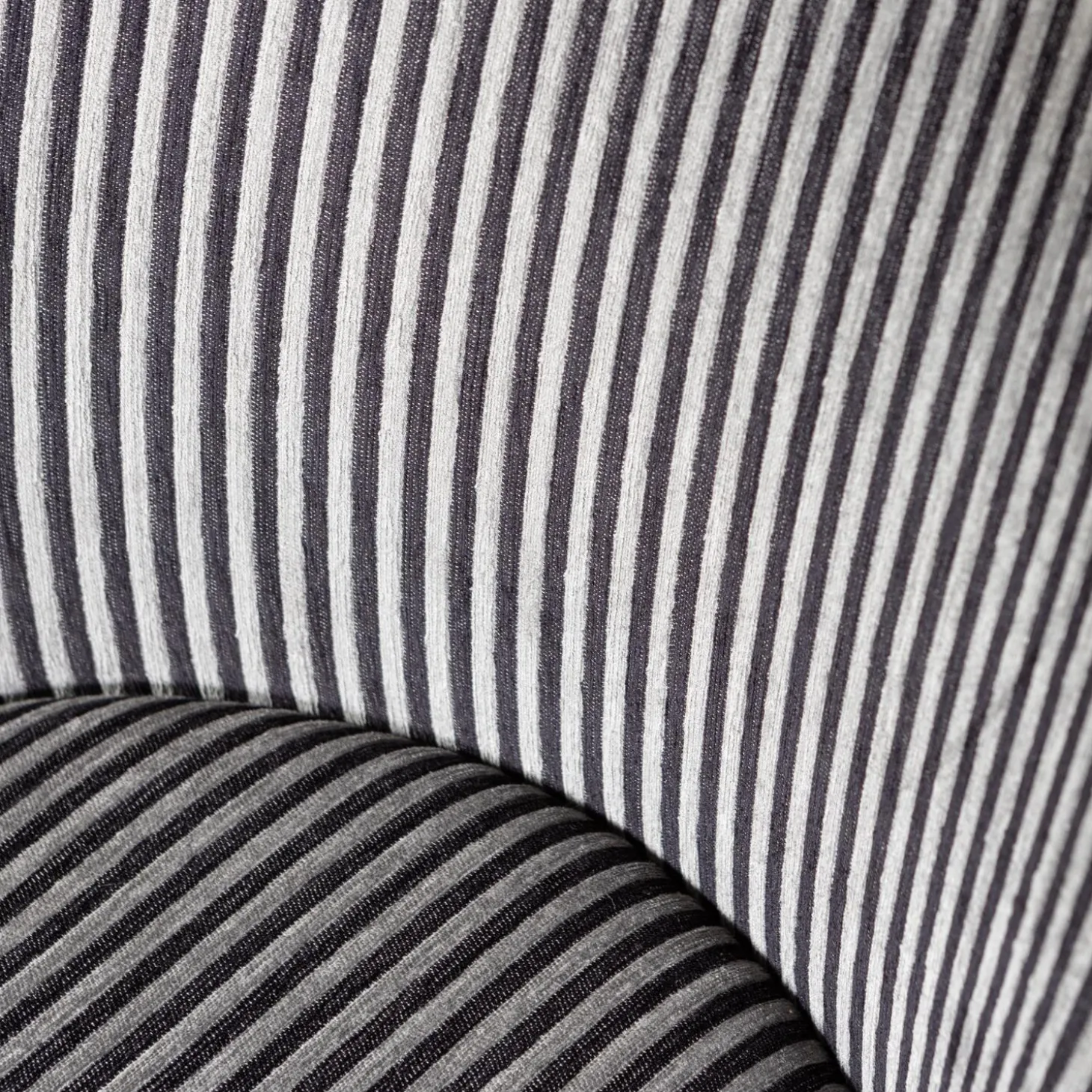 De geweven stof heeft een prachtig streeppatroon en een verfijnde textuur die direct een warme sfeer aan elke ruimte toevoegt. Met een Martindale van 30.000 is deze stof geschikt voor normaal gebruik. De combinatiestof bestaat uit 48% polyester, 31% rayon en 21% katoen, de gebruikte weeftechniek geeft de stof een volle en rijke uitstraling. De combinatie van deze stof met de zwart metalen slanke poten maakt Vogue eigentijds en uniek.