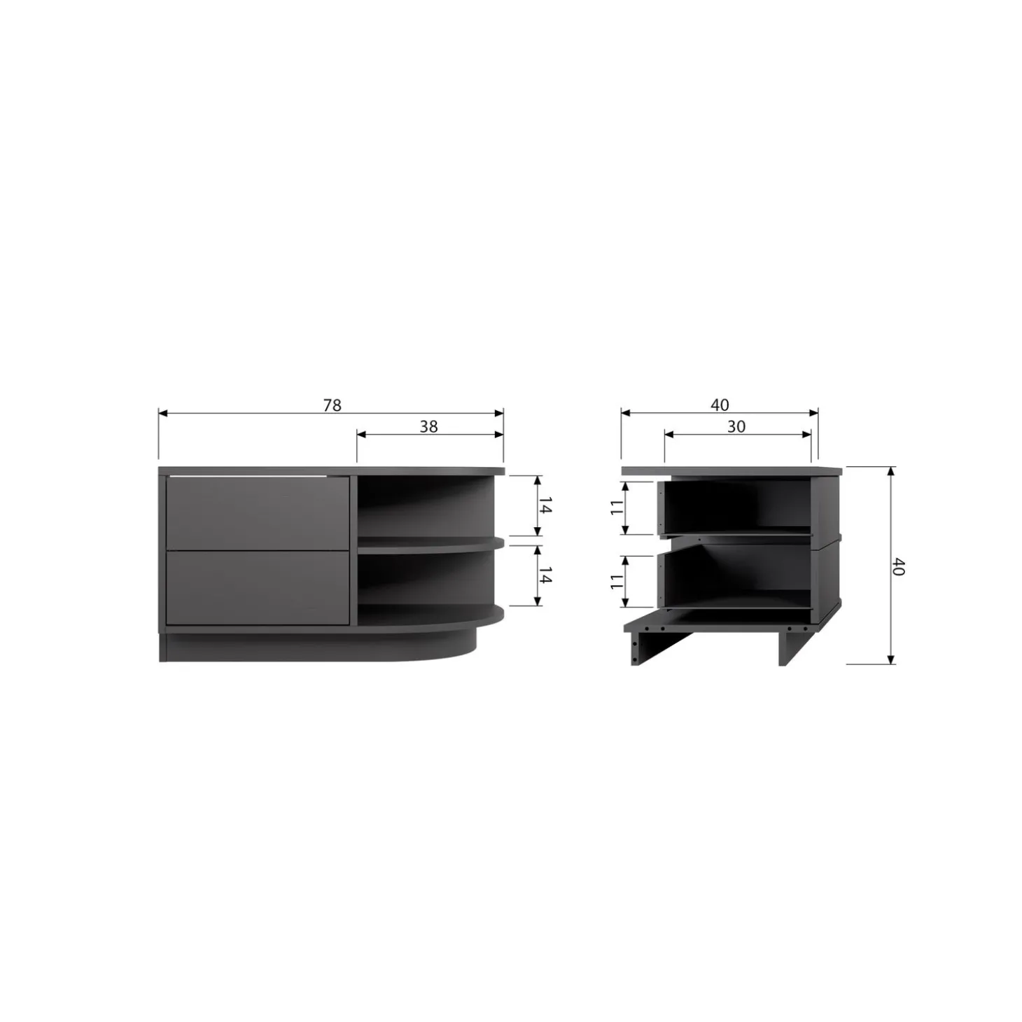 FINCA TV MEUBEL ROND RECHTS 78 CM GRENEN DIEPZWART [fsc]