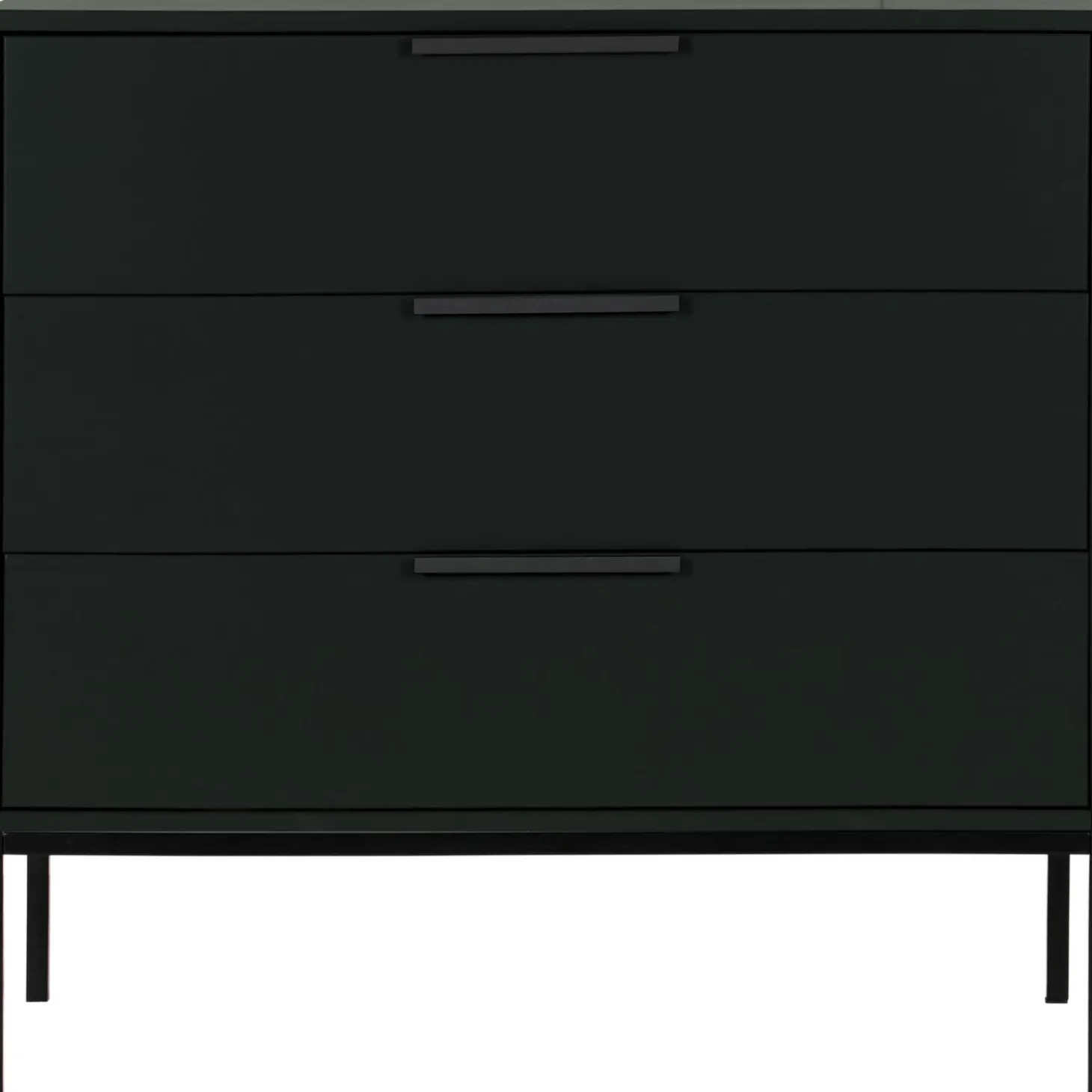 De lades van de ladenkast Adam hebben een hoogte van 22 cm en een breedte van 90 cm. Hierdoor hebben ze genoeg ruimte om alle spullen in op te bergen die je niet wilt zien. Let wel op met het sluiten van de lades want, de lades hebben een normale ladegeleider en zijn niet voorzien van softclose. De poothoogte is 24 cm, deze is gemaakt van staal met een mat zwarte poedercoating.