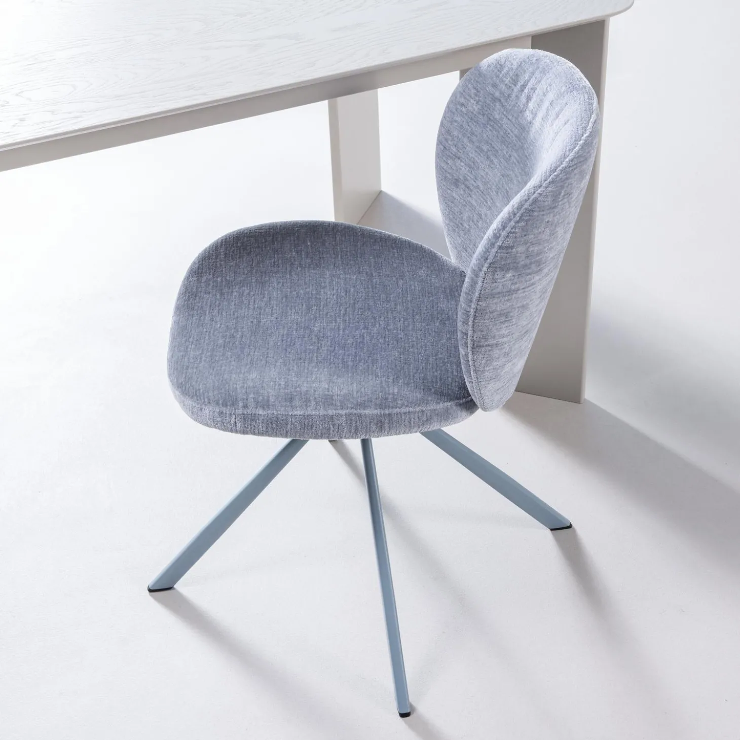 De Femke draaibare eetkamerstoel in chenille blauw is precies wat je zoekt voor dat perfecte evenwicht tussen comfort en stijl.
