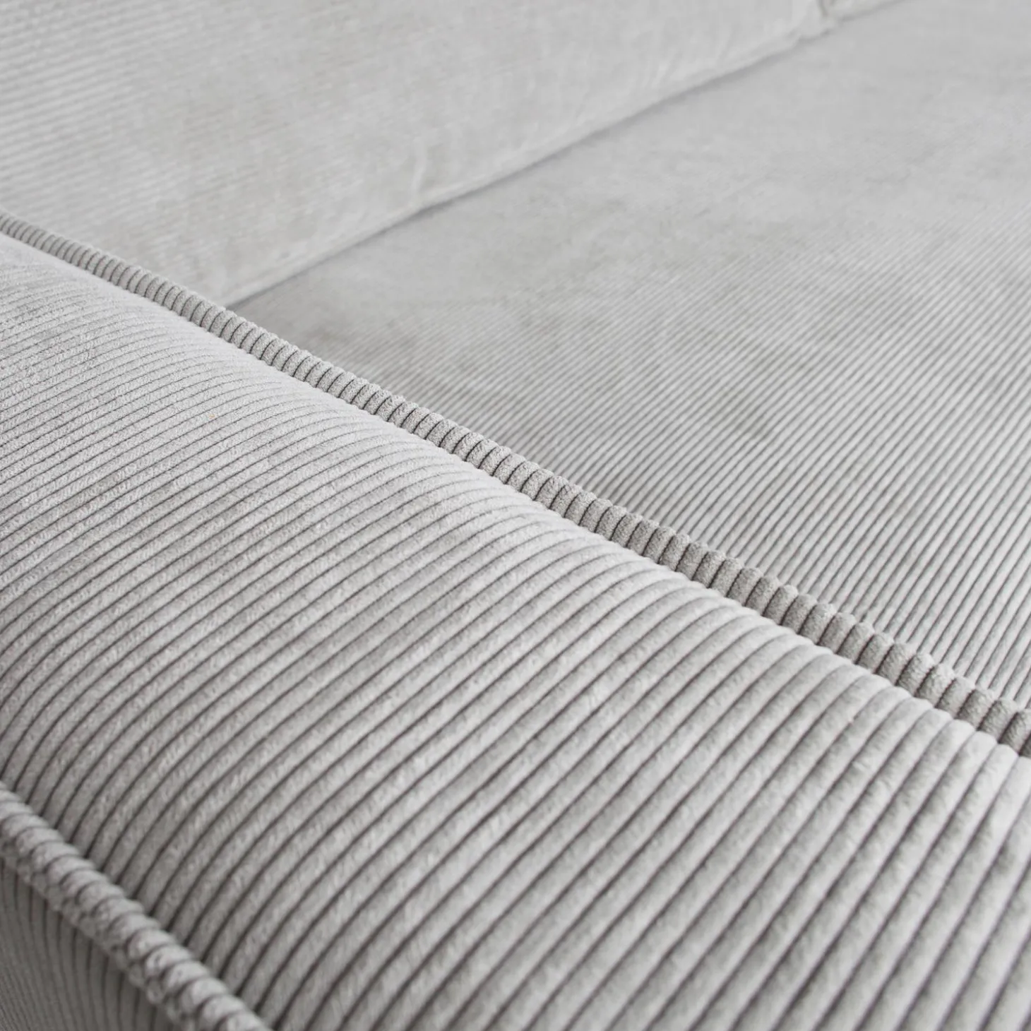 De stevige schuimvulling biedt precies de juiste balans tussen zacht en stevig. Je zakt er lekker in weg, maar wordt niet opgeslokt. De ribstof is momenteel dé trend in interieurland, en terecht. Deze zachte stof bestaat uit 92% polyester en 8% nylon, wat zorgt voor een luxe uitstraling die verrassend onderhoudsvriendelijk is. De smalle ribbels geven de bank een slanke, verfijnde look.