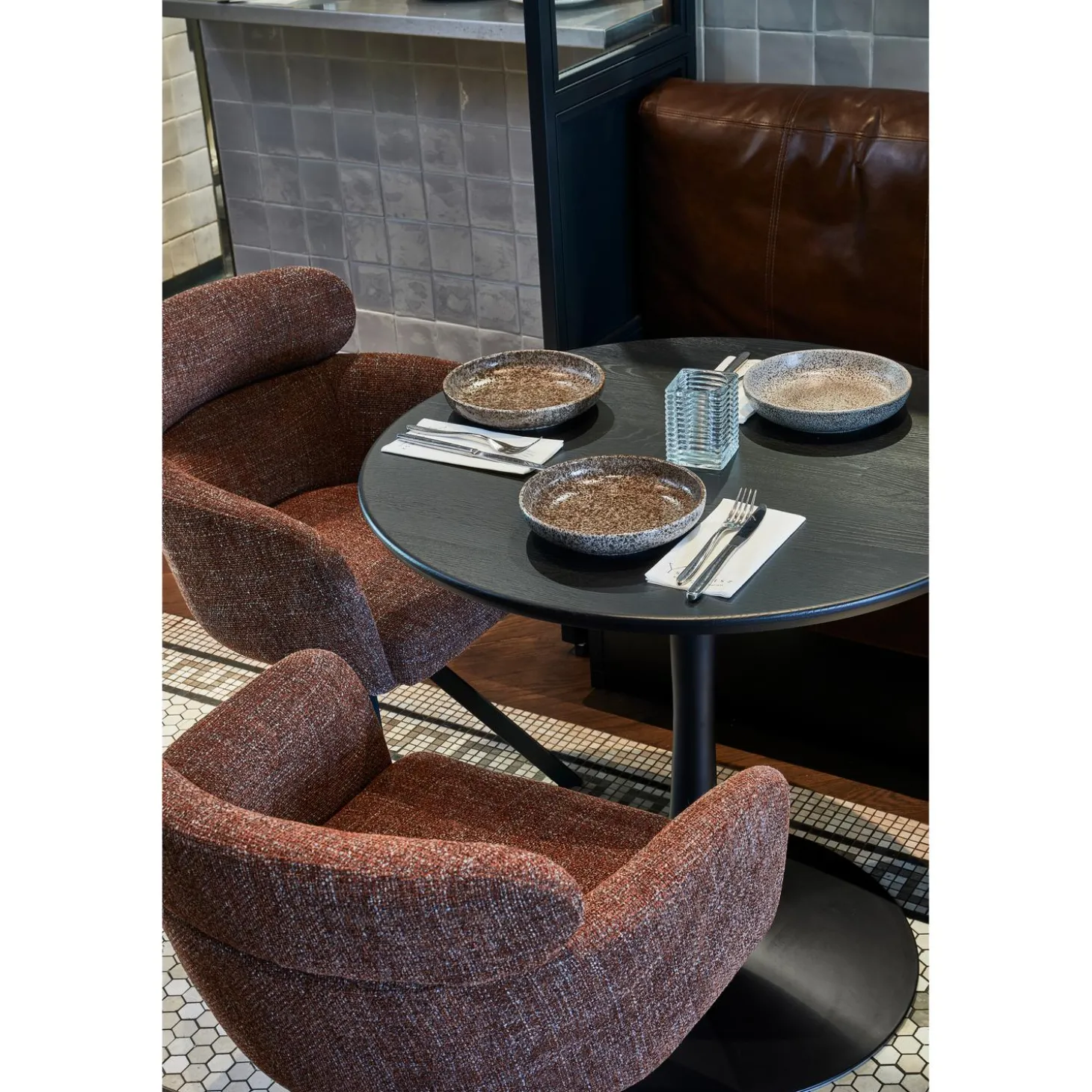 Sale WOOOD Fenne Draaibare Eetkamerstoel Geweven Stof Kastanje Kastanjebruin