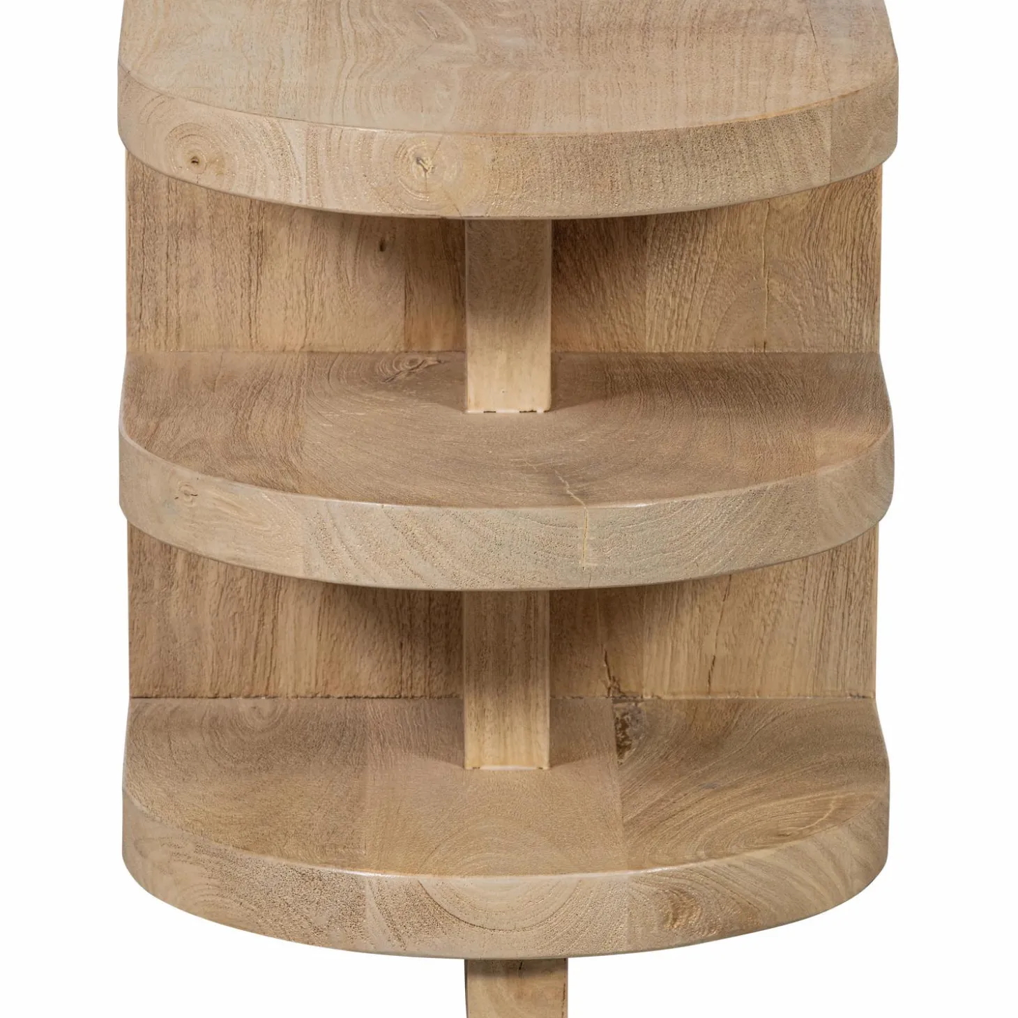Robuust maar met vriendelijke, halfronde vormen. Daarmee geeft deze Darren bijzettafel van naturel mangohout een stevige basis aan je interieur! Darren komt uit de collectie van het merk WOOOD en heeft een tijdloze uitstraling waardoor hij ook gemakkelijk in meerdere interieurstijlen thuis past. De bijzettafel heeft een max. draaggewicht van 10 kg.