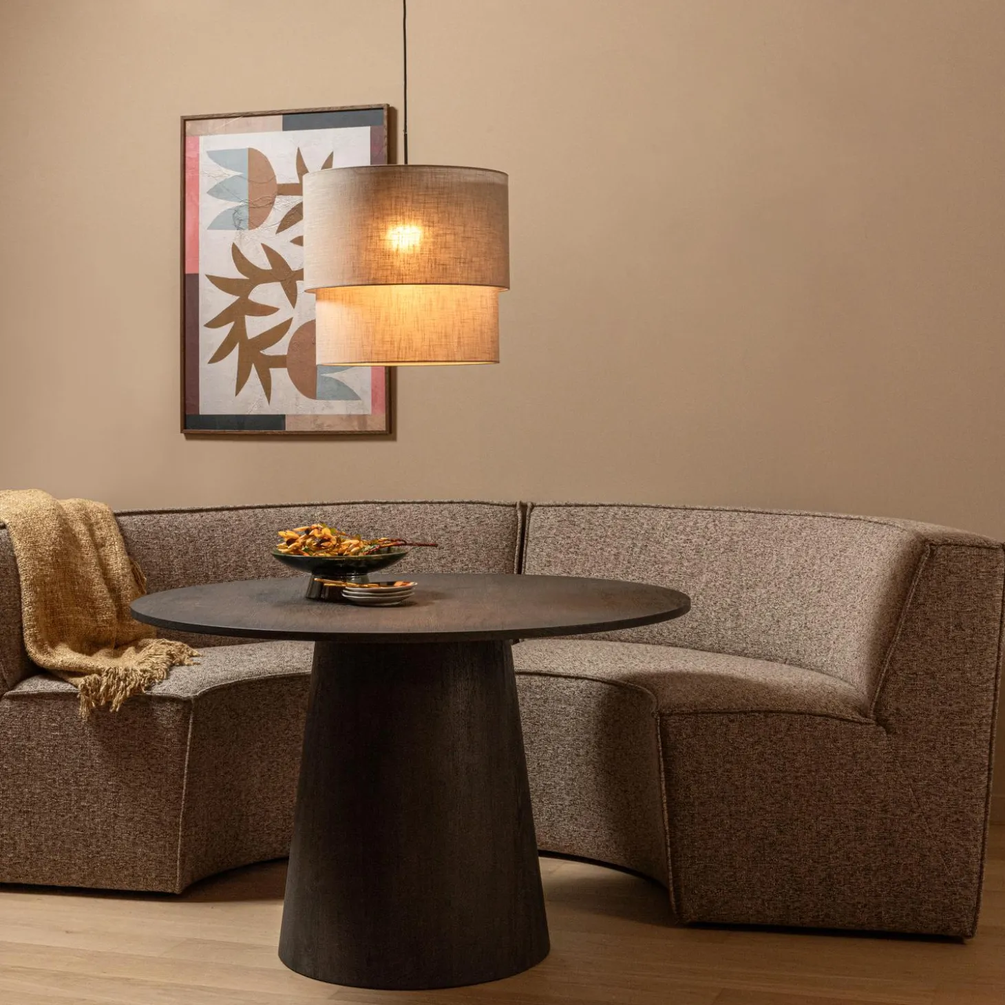 DeEuropa 2 zits eetbank heeft een unieke ronde vorm en een comfortabele zit. De bank is voorzien van een heerlijke hoge rugleuning en stevige zit. De bank is gestoffeerd met een zachte melange stof in en uitgevoerd in de kleur donkerbruin.