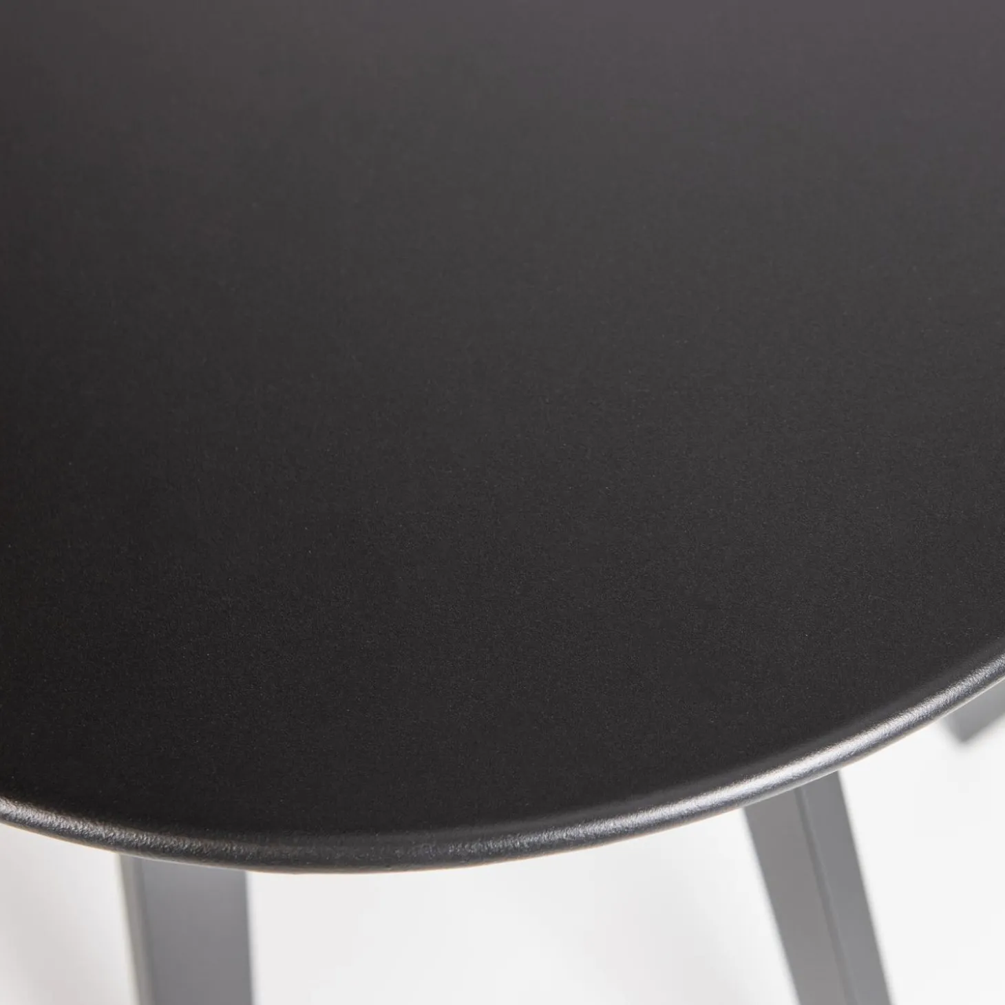 Het metaal waarvan deze tafel gemaakt is, combineert het beste van twee werelden: lichtgewicht genoeg om gemakkelijk te verplaatsen, maar tegelijkertijd sterk en stevig voor jarenlang gebruik. Dit maakt de tafel ideaal voor zowel binnen als buiten. De zwarte poedercoating geeft de tafel een luxe uitstraling.