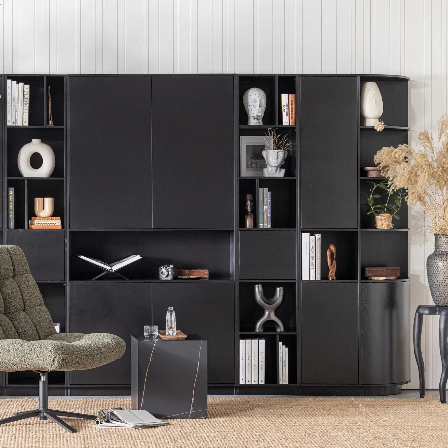 De Finca open vakkenkast is een waar pronkstuk in de woonruimte. De open vakken zijn speels ingedeeld voor het presenteren van jouw mooiste woondecoratie. Het deurtje houdt nog eens een ruime opbergruimte uit het zicht. De vakken hebben verschillende breedtematen en elk een diepte van 37 cm. De onderrand van de vakkenkast laat 7 cm ruimte over aan de voorzijde, hierdoor lijkt het meubel te zweven. Iedere plank heeft een draagkracht van maximaal 10 kg wanneer het gewicht gelijkwaardig verspreid is.
