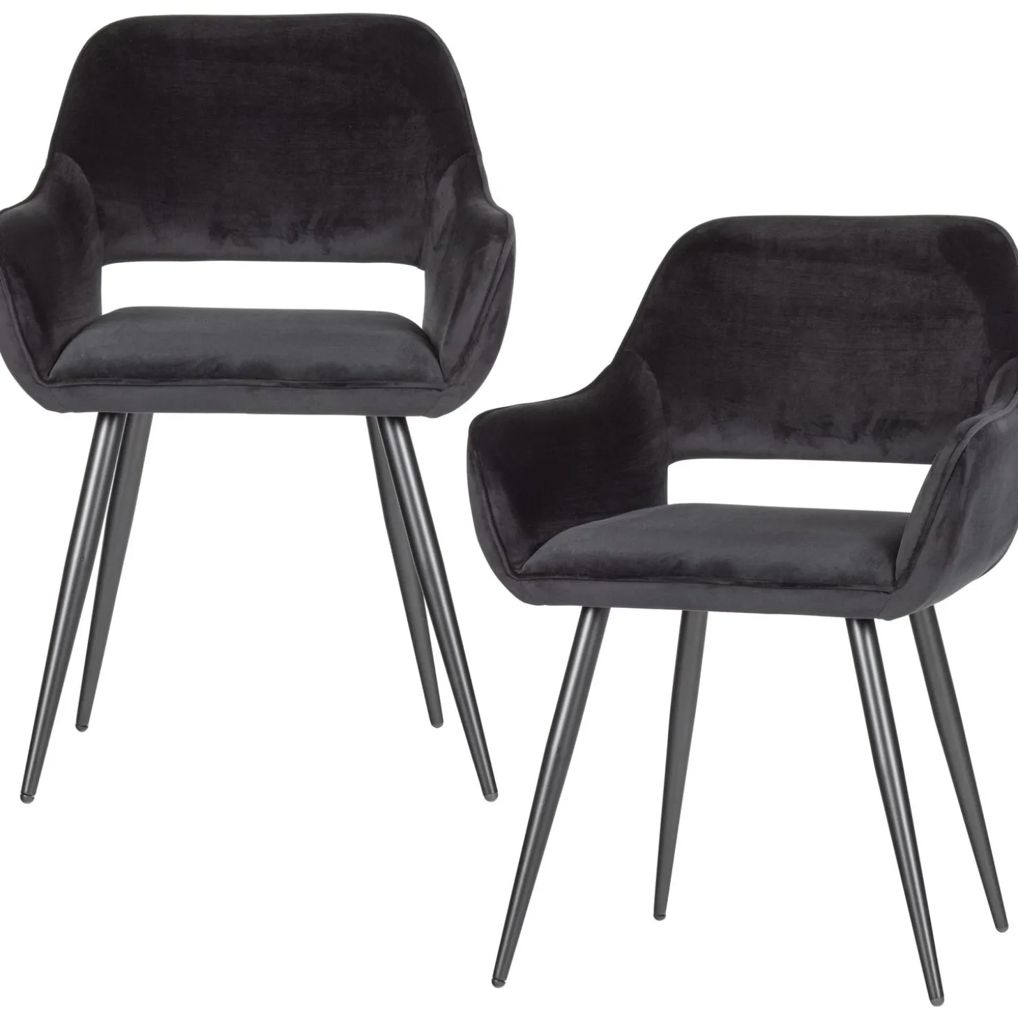 Deze smaakvolle eetkamerstoel Jelle van het merk WOOOD heeft een eigentijds en comfortabel model en is uitgevoerd in een heerlijke fluweelzachte stof in de kleur zwart.Deze eetkamerstoel zit heerlijk comfortabel, heeft aangename armleuningen en is goed te combineren met de eettafels van WOOOD. Het zwart metalen frame is stevig en de kuipzitting met uitsparing in de achterkant geeft een ruimtelijk effect. Een stoel als deze is sfeervol en trendy.