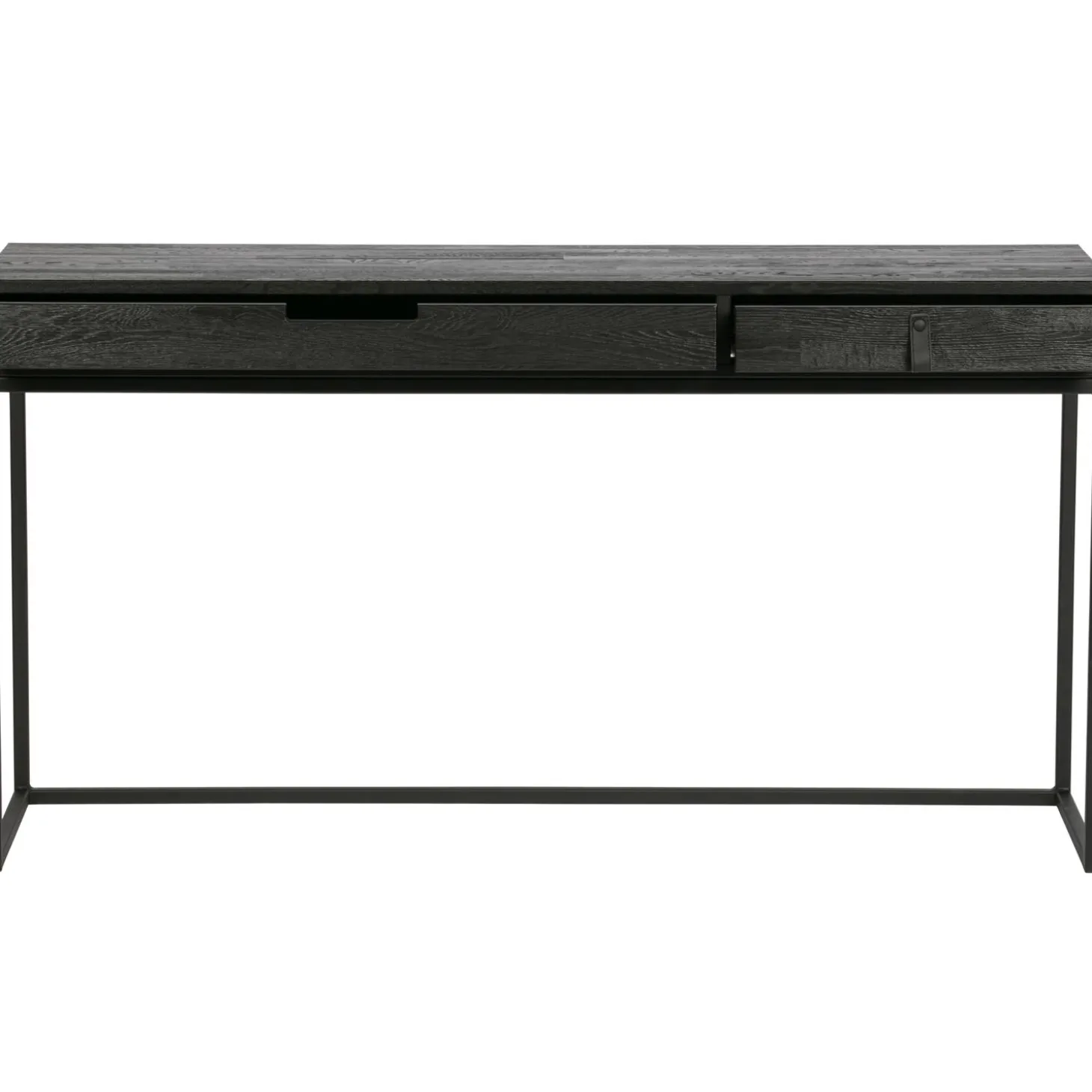 Het Silas bureau is gemaakt van essenhout (vingerlas), heeft een extra geschuurde afwerking gekregen en is afgewerkt in de kleur blacknight (zwart). Het onderstel is van zwart metaal en heeft een hoogte van 63 cm. Beide lades hebben een diepte van 38 cm. De grote lade heeft een breedte van 86 cm en de kleinere lade heeft een breedte van 42.