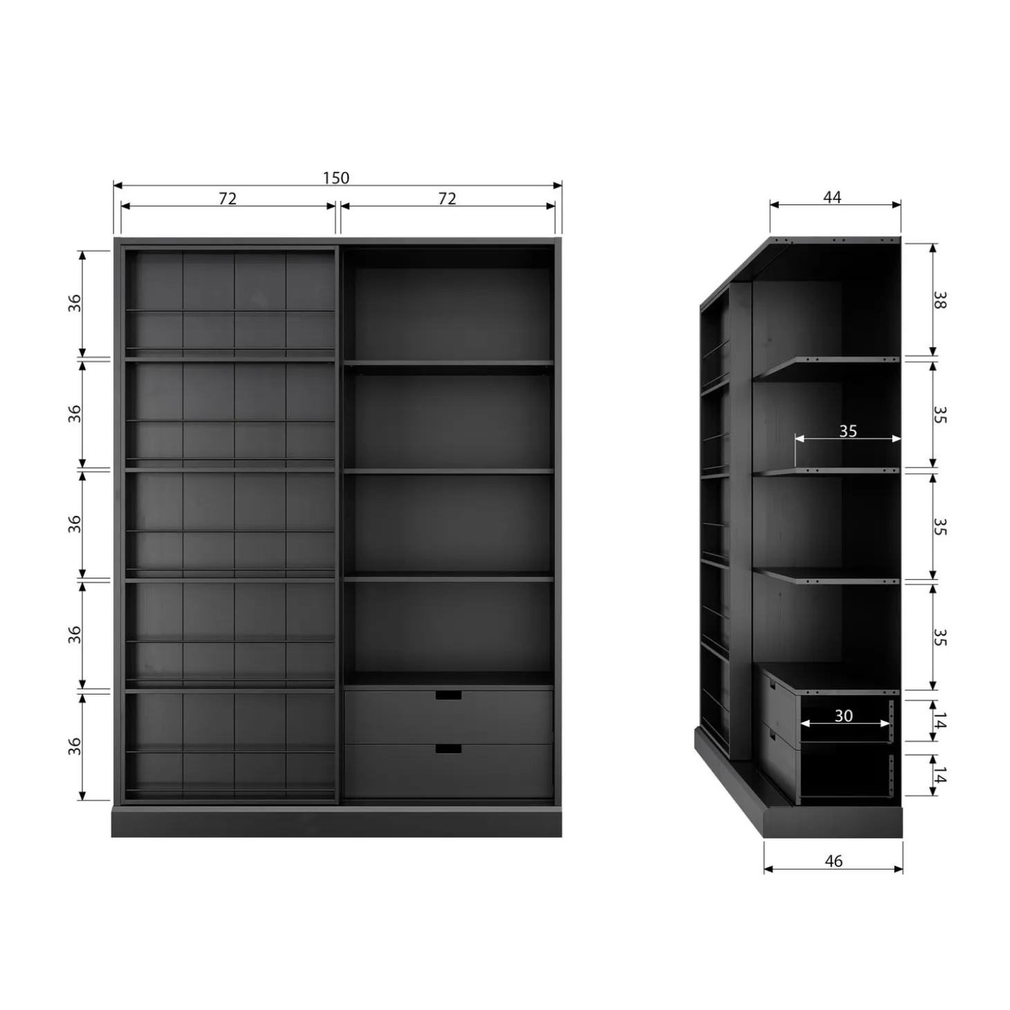PAKKET 2#4 SWING SCHUIFDEURKAST GESCHUURD MAT ZWART [fsc]