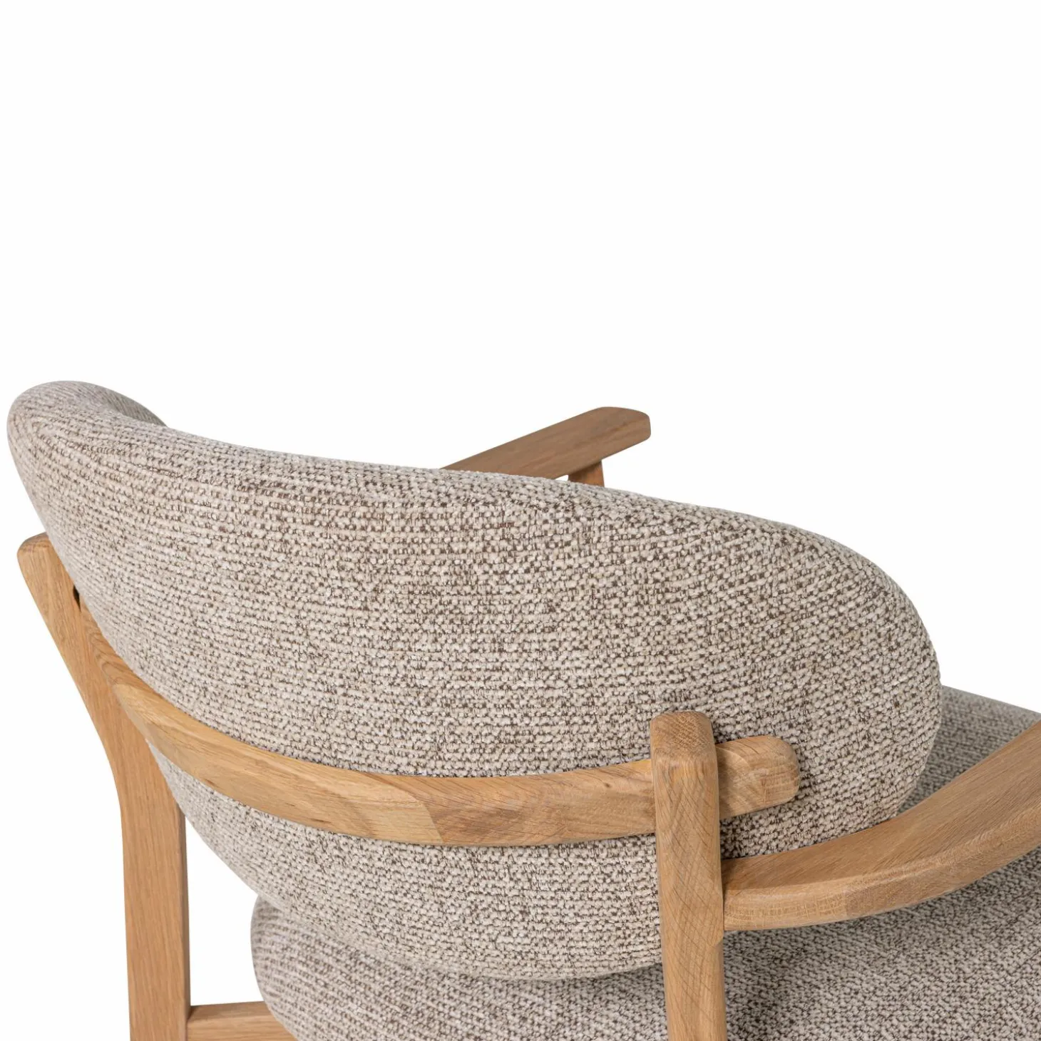 De geweven melange stof More heeft niet alleen een unieke uitstraling, maar voelt ook heerlijk aan. Het eikenhout onderstel geeft de fauteuil karakter en zorgt voor die warme, natuurlijke touch die je interieur compleet maakt.