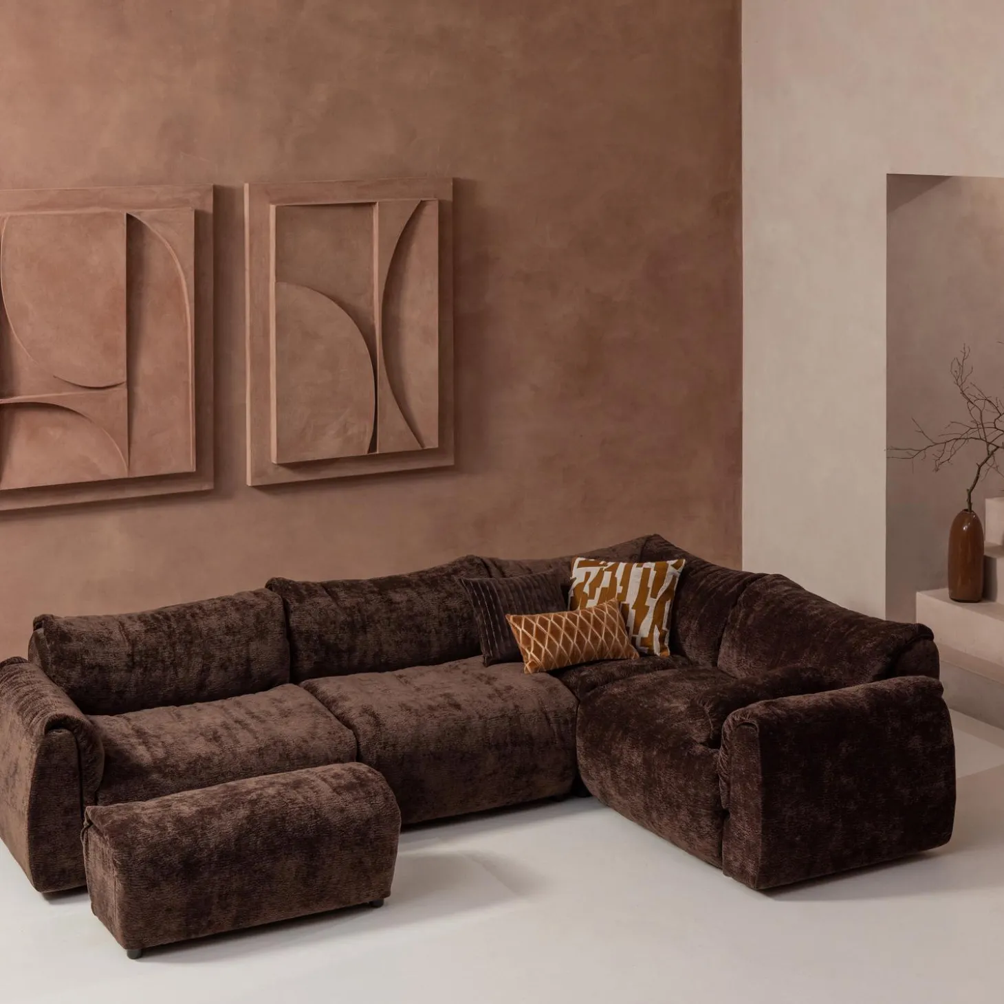 Clearance WOOOD Baggy Hoekbank Rechts 3D Chenille Donkerbruin