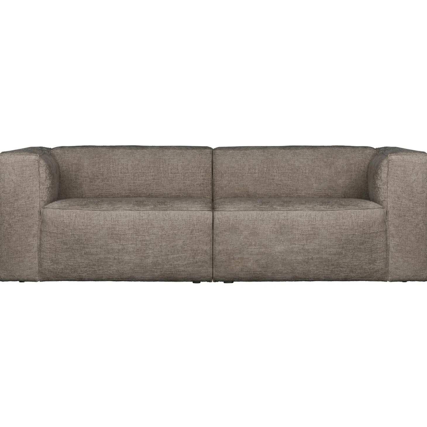 Dit is de Bean 3,5 zits bank in een nieuwe duurzame stof. Een mooie travertin kleurige grove melange stof, die op een subtiele manier opvalt. De Bean bank heeft een stevige body, een stoer uiterlijk en zit comfortabel. De stof is sterk, bestaat voor 100% uit polyester (Martindale 100.000) en het reinigen van de stof is eenvoudig. Om nog meer comfort toe te voegen aan de 3,5-zitter kies je voor bijpassende kussens, deze zijn los verkrijgbaar.