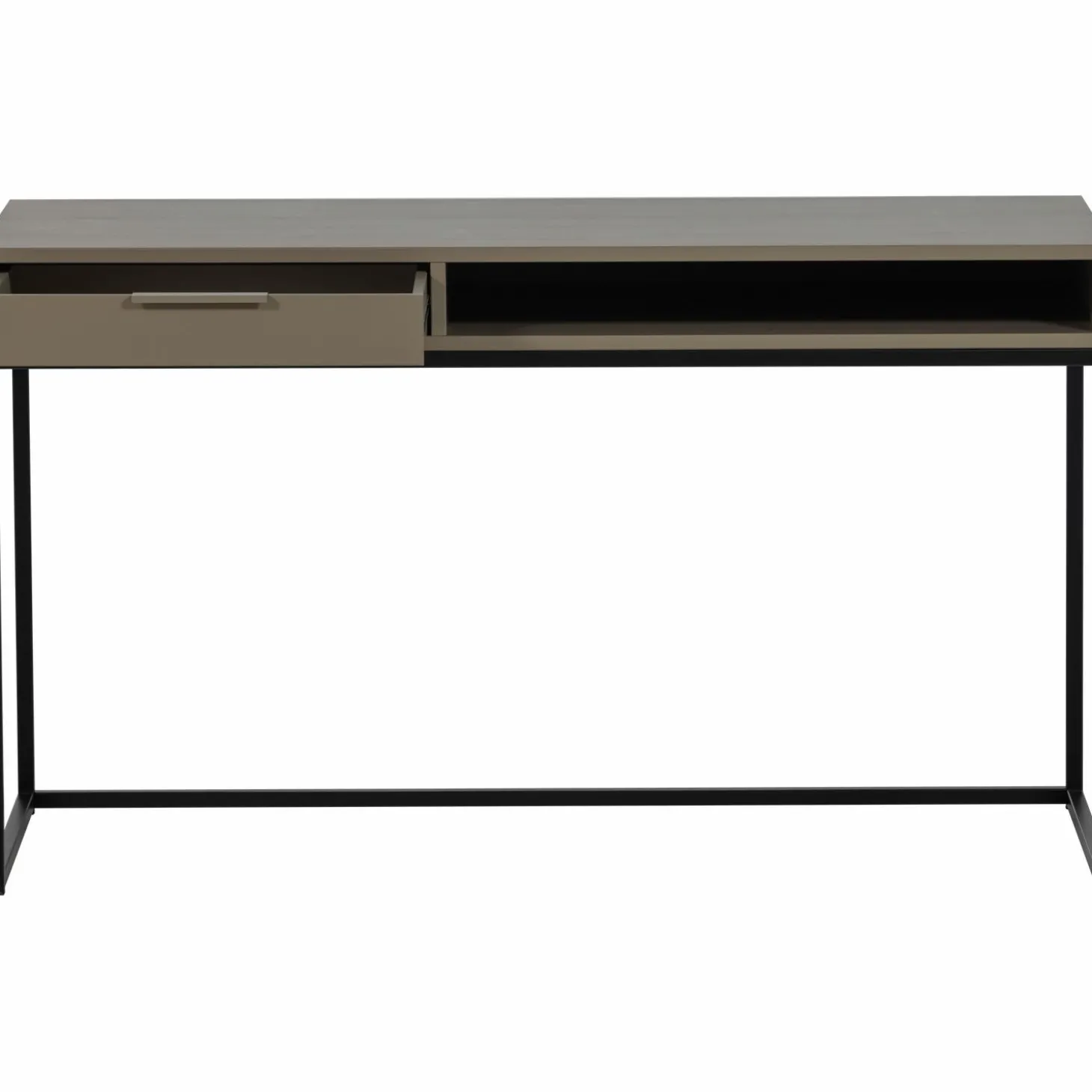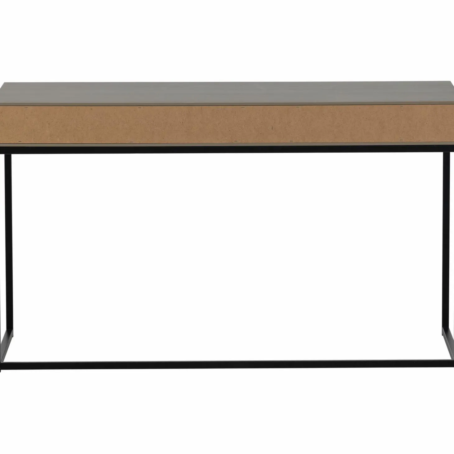 Grenenhout in mud‑tint met zwart metalen onderstel, past bij elke interieurstijl