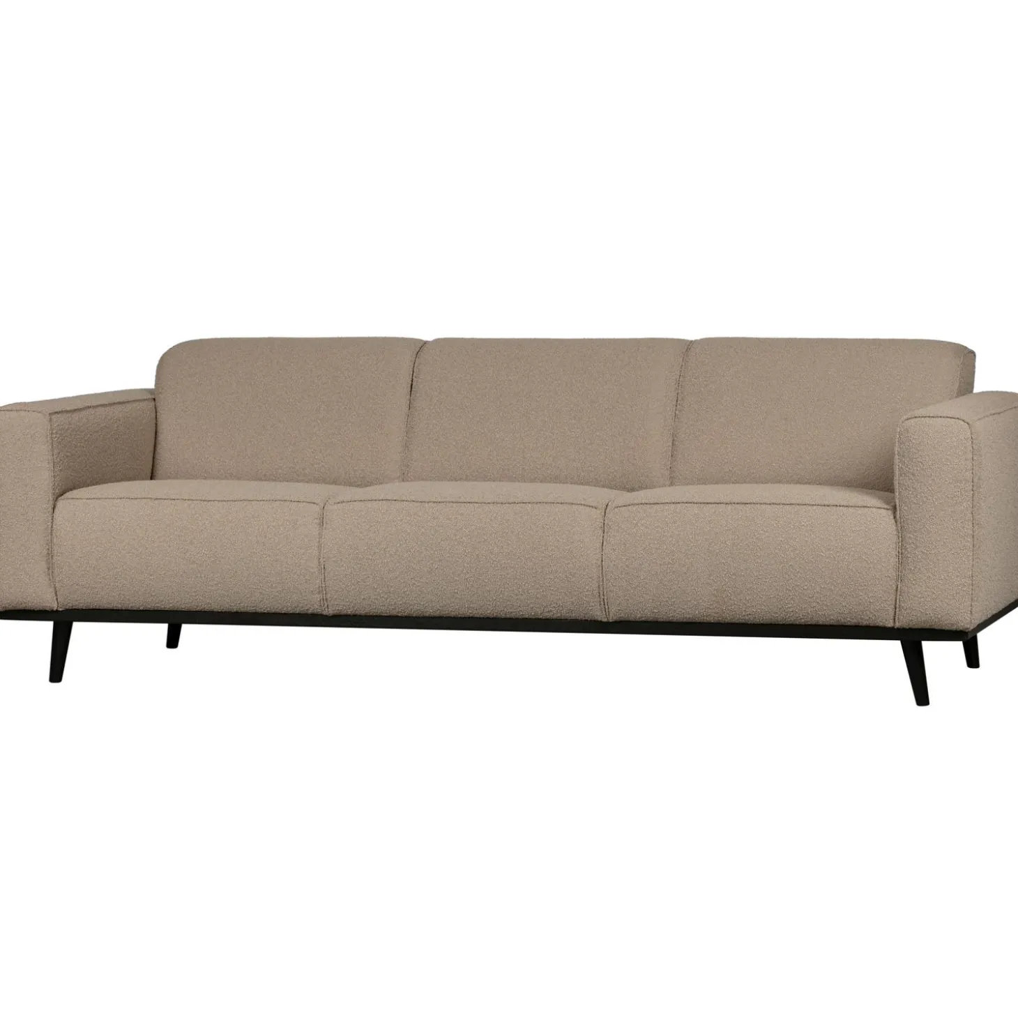 De Statement bank uit de collectie van WOOOD, heeft een de pure uitstraling en deze variant is uitgevoerd in een zachte bouclé stof in de kleur beige. Super aaibaar en brengt een warme sfeer in huis. De stof bouclé heeft een volle zware kwaliteit en is geschikt voor intensief gebruik.Deze 3-zits uitvoering van de Statement heeft een zithoogte van 45 cm, een zitbreedte van 195 cm en een zitdiepte van 62 cm. De poten hebben een hoogte van 15 cm en zijn vervaardigd uit zwart gelakt berkenhout.