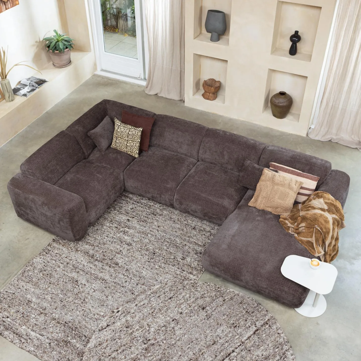 PAKKET 3#4 CLOUD HOEKBANK LINKS GEWEVEN CHENILLE WARM BRUIN