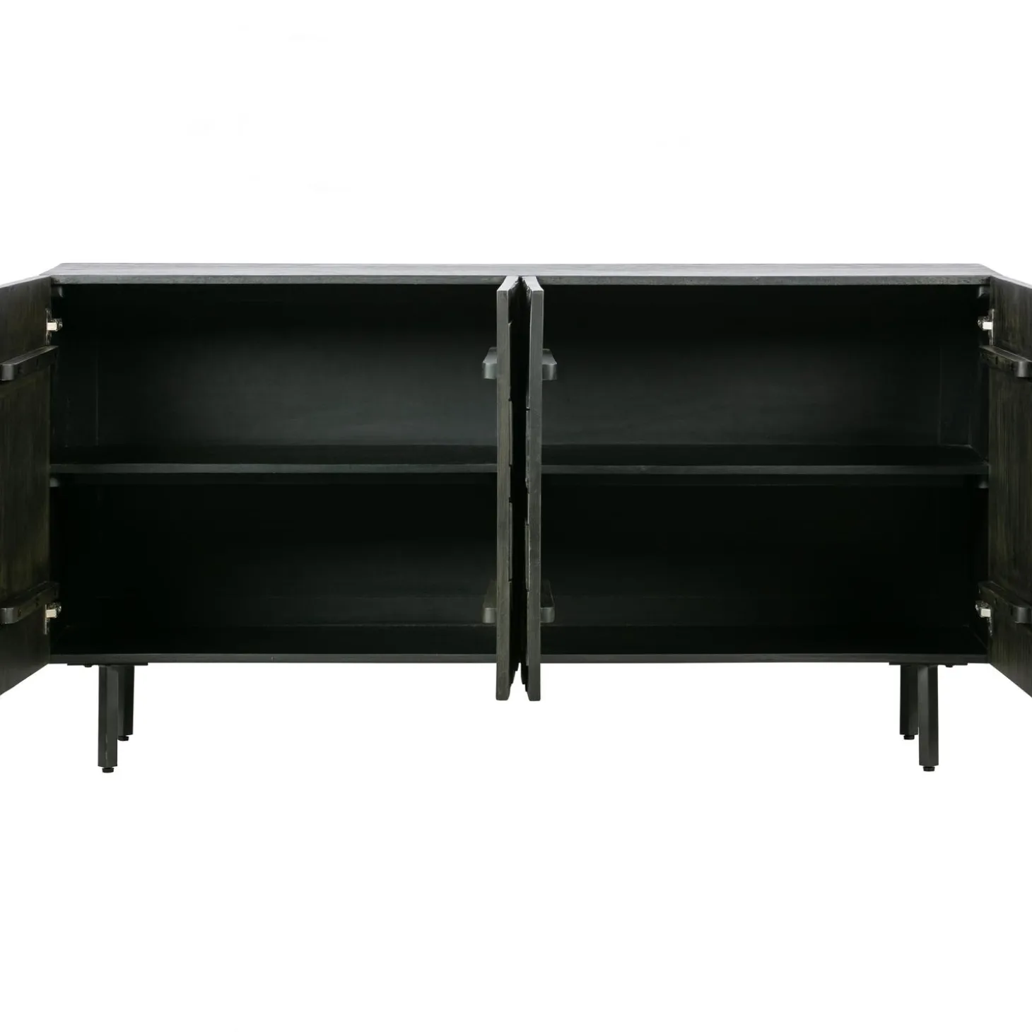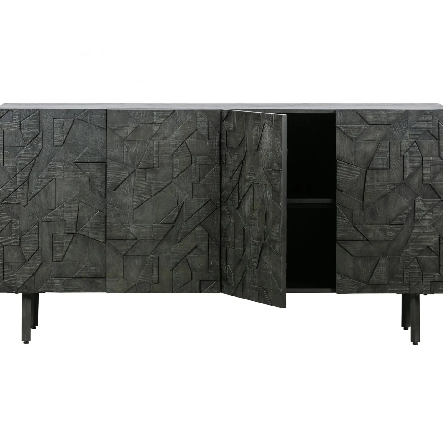Het dressoir heeft een totale hoogte van 83 cm, is 160 cm breed en 40 cm diep. De metalen poten hebben een hoogte van 18 cm. De vier deuren met houtsnijwerk zijn 65 cm hoog, 39,5 cm breed en 2 cm dik. De deurtjes beschikken over een softclose systeem. De inhoud van de kast is in twee grote vakken verdeeld met elk een 78 cm brede legplank. Deze legplank heeft een diepte van 33,5 cm. De open vakken hebben in een inhoud van (hxbxd) 30x78x35 cm.