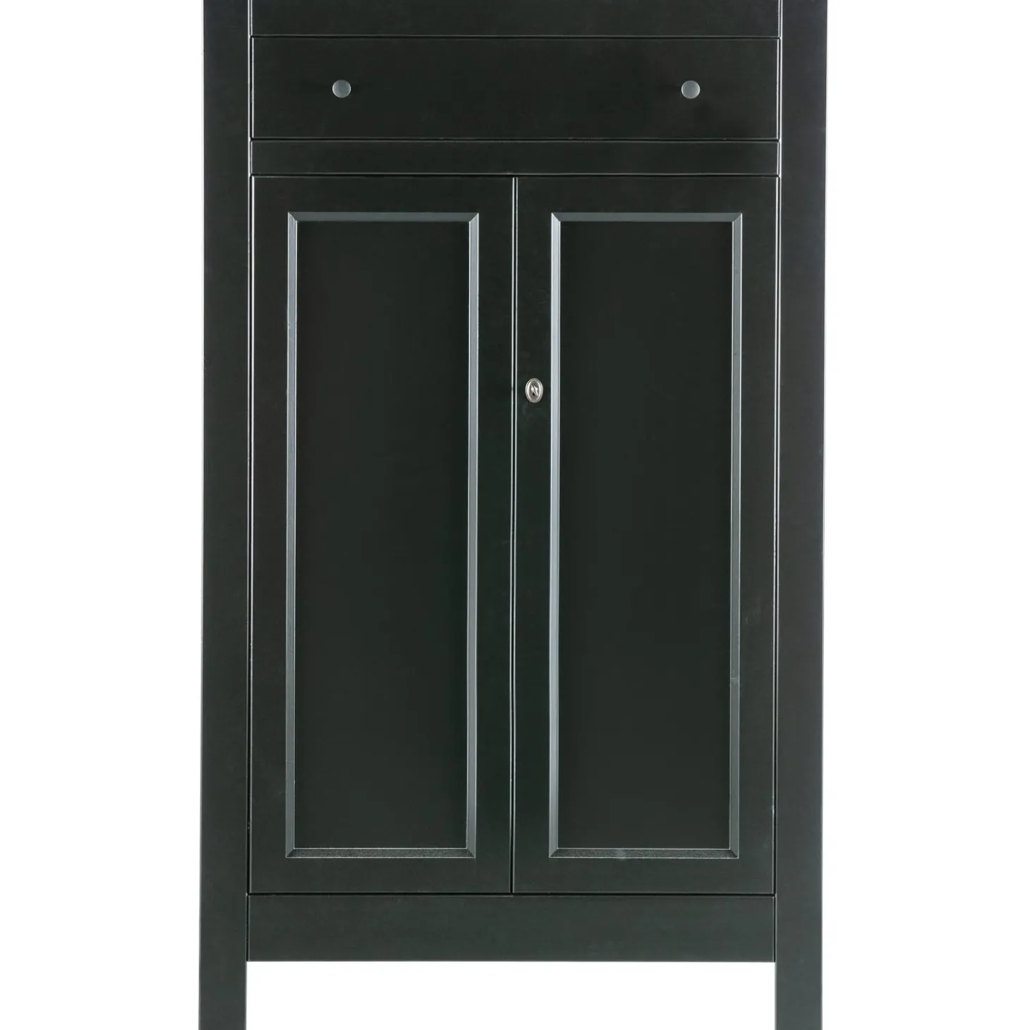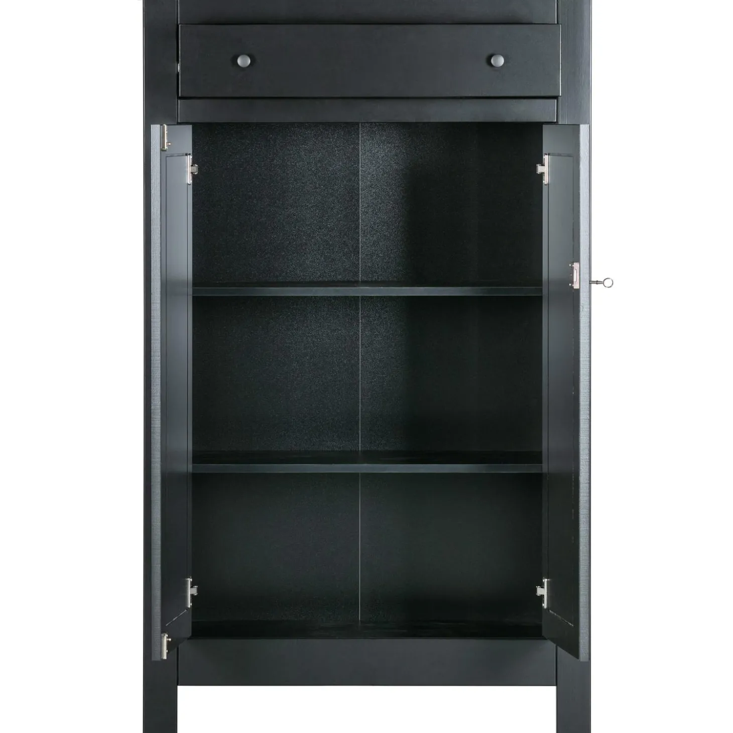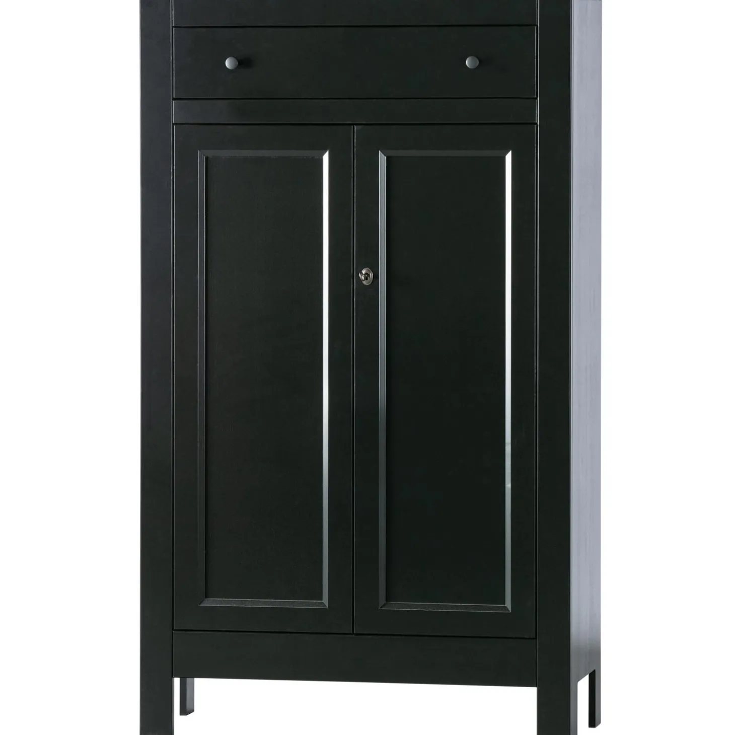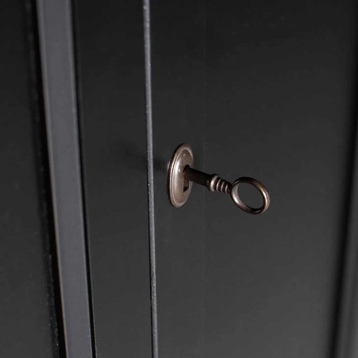 Wat een plaatje! Deze stoere meidenkast Eva uit de WOOOD collectie. Deze kast brengt direct sfeer in je interieur. Hij past prima in meerdere woonstijlen en leent zich perfect voor in een woonkamer of slaapkamer. De kast is gemaakt van zwart gelakt grenenhout dat afkomstig is van een FSC gecertificeerde leverancier. Het interieur van deze kast is gemaakt van gemelamineerd spaanplaat en de handige lade bovenin, met 2 zwart metalen knoppen en is voorzien van solide metalen ladegeleiders. De binnenkant van de kast is ingericht met 3 brede legplanken. De twee deuren in de kast zijn voorzien van een slot en sleutel. Deze wandkast bied je genoeg opbergruimte voor alle spullen die je niet graag laat zien.