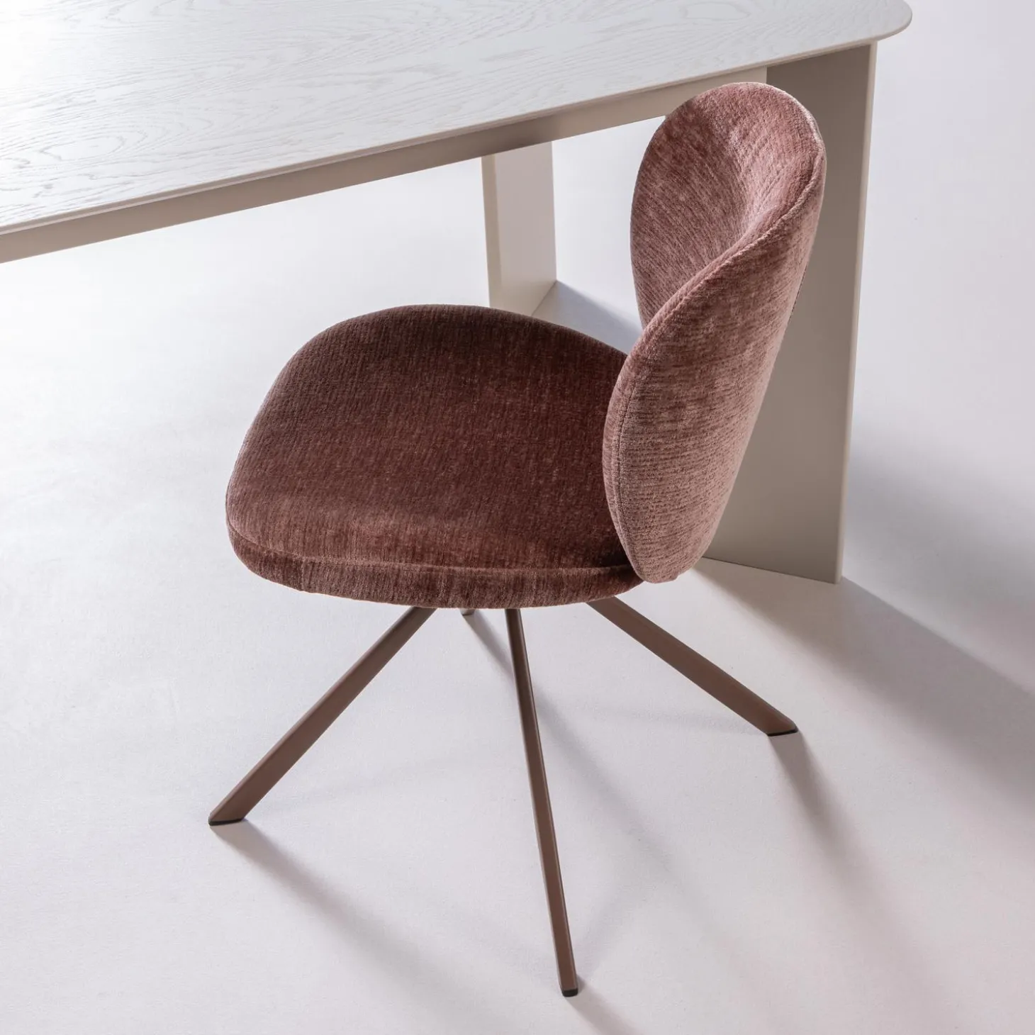 De Femke draaibare eetkamerstoel in chenille bruin is precies wat je zoekt voor dat perfecte evenwicht tussen comfort en stijl.